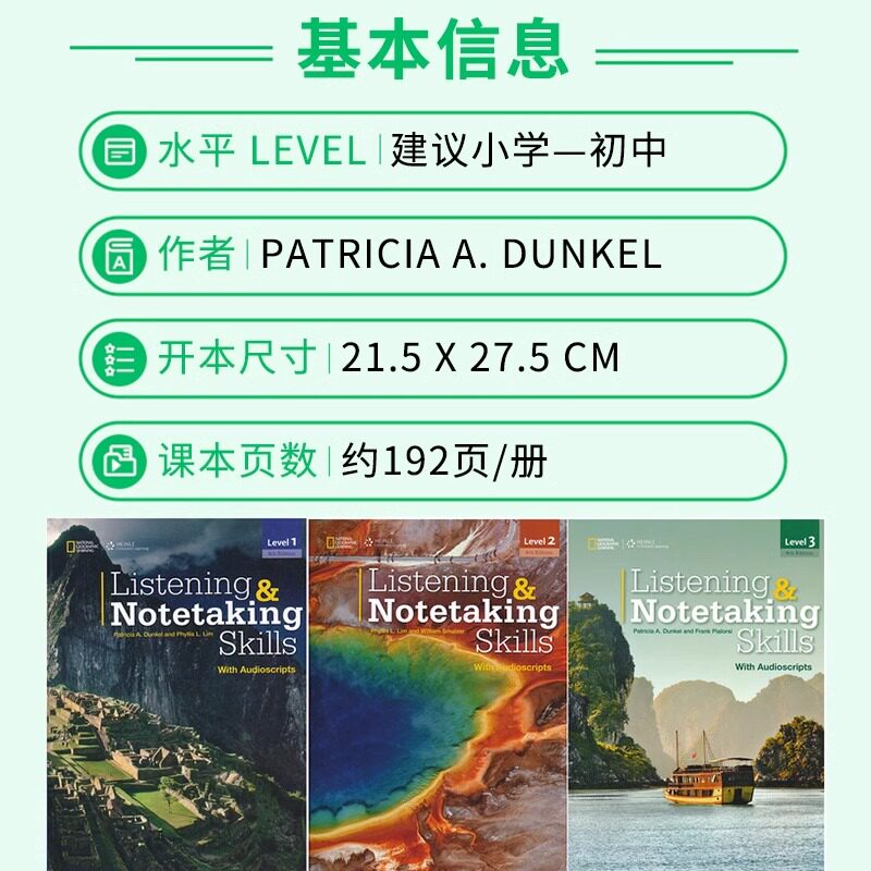 📚 Listening & Notetaking Skills1/2/3级别第四版英文原版进口 国家地理 少年英语听力笔记技能技巧专项强化训练寒暑假短期学习教材