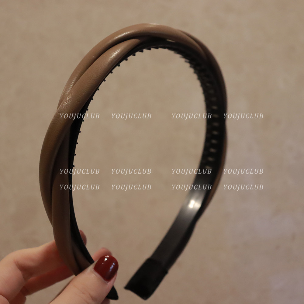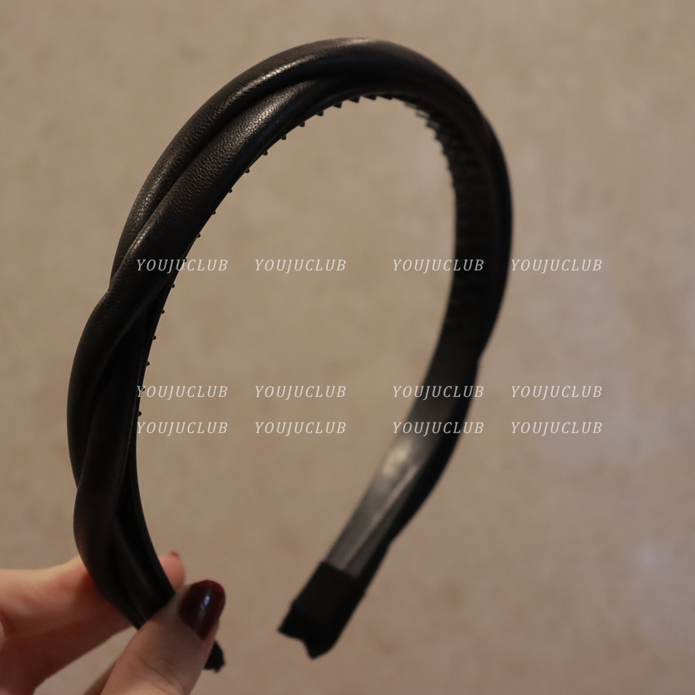 📚 旺角餐厅~复古港风pu皮麻花细发箍发带高级气质头箍韩国ins发饰