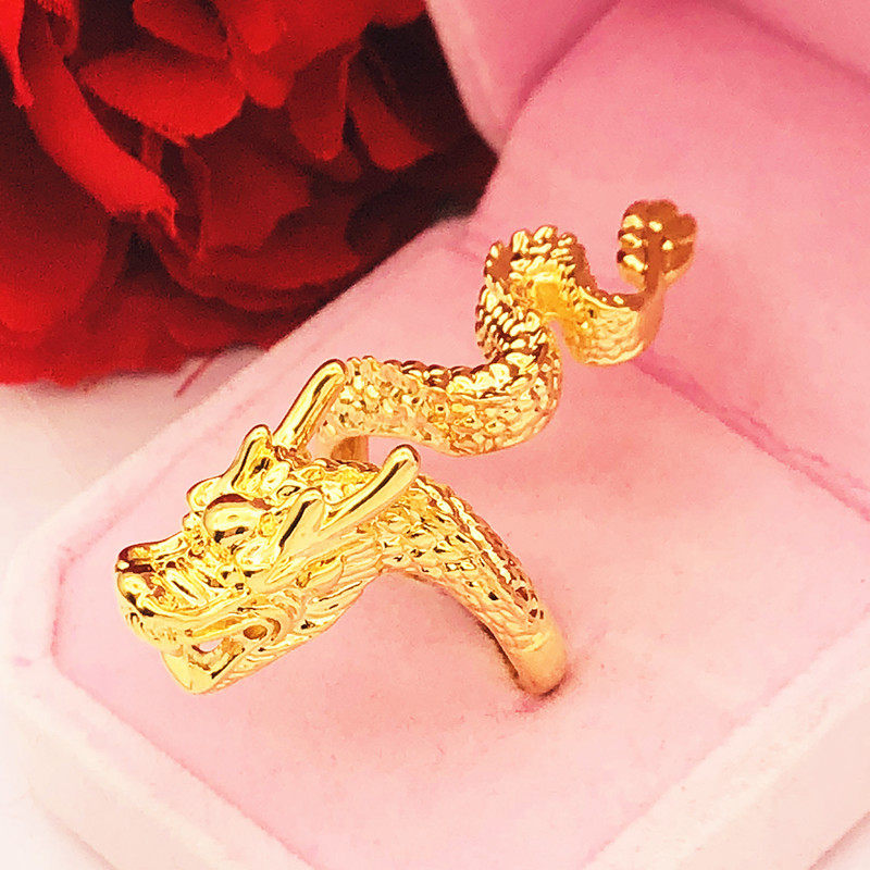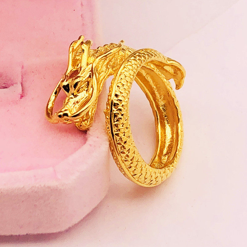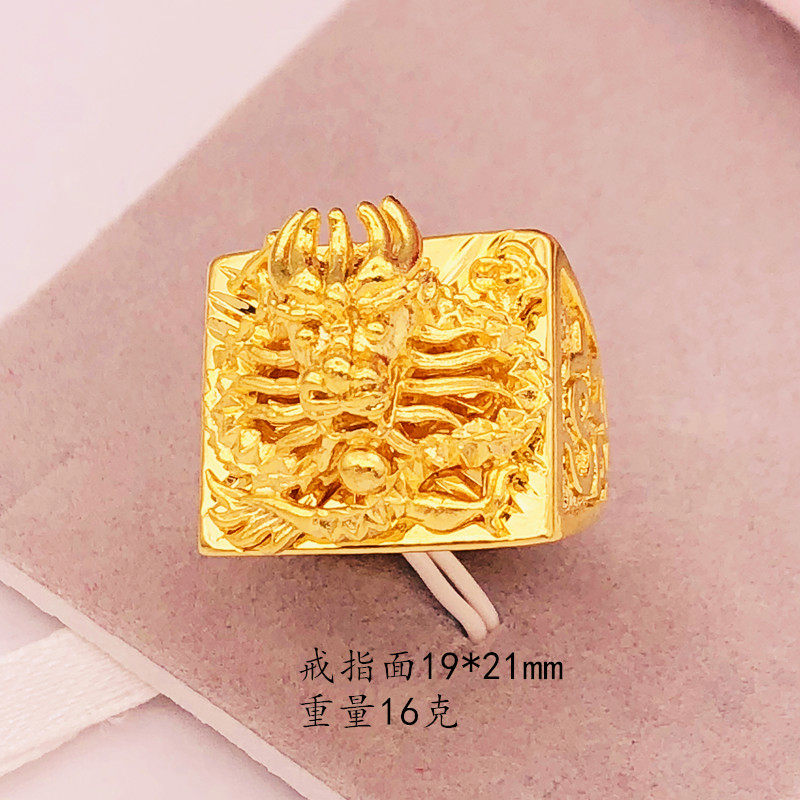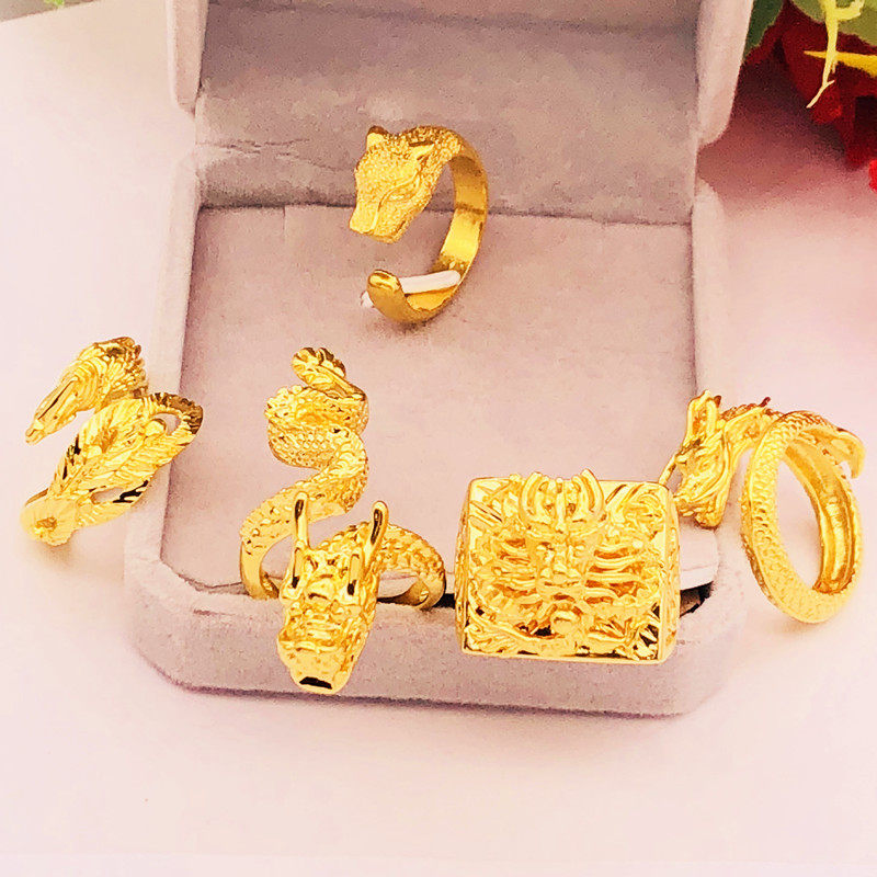 📚 越南沙金戒指男女活扣龙纹凤凰指环铜镀24k金假黄金饰品久不掉色