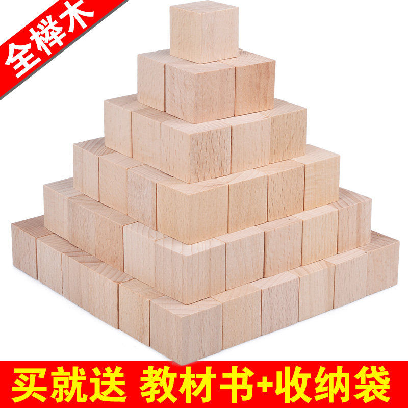 📚 100粒原木大块木制正方体立方体积木块 数学教具儿童益智方块玩具