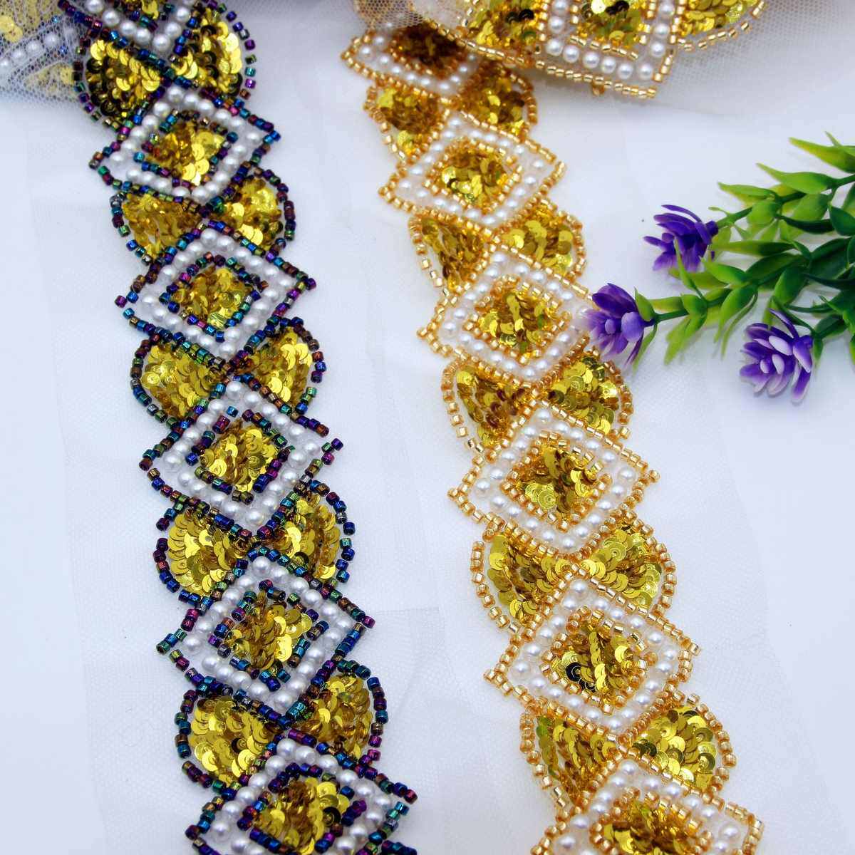 📚 新款机绣亮片辅料花边网底布泡珠钉珠手工DIY腰带头巾婚纱配饰条