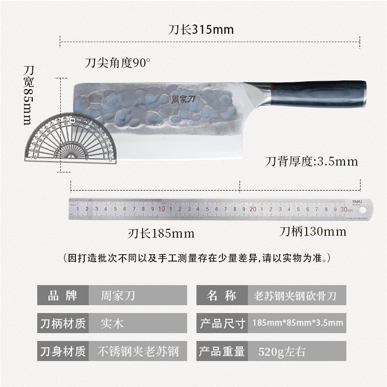 📚 【老苏钢】周家刀老苏钢夹钢砍骨刀切片刀家庭套刀锋利耐用不锈钢