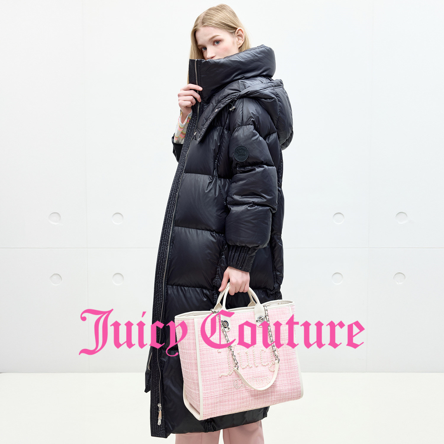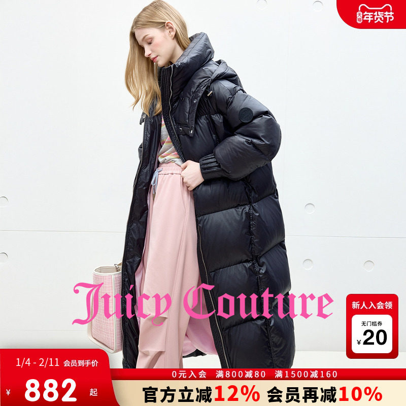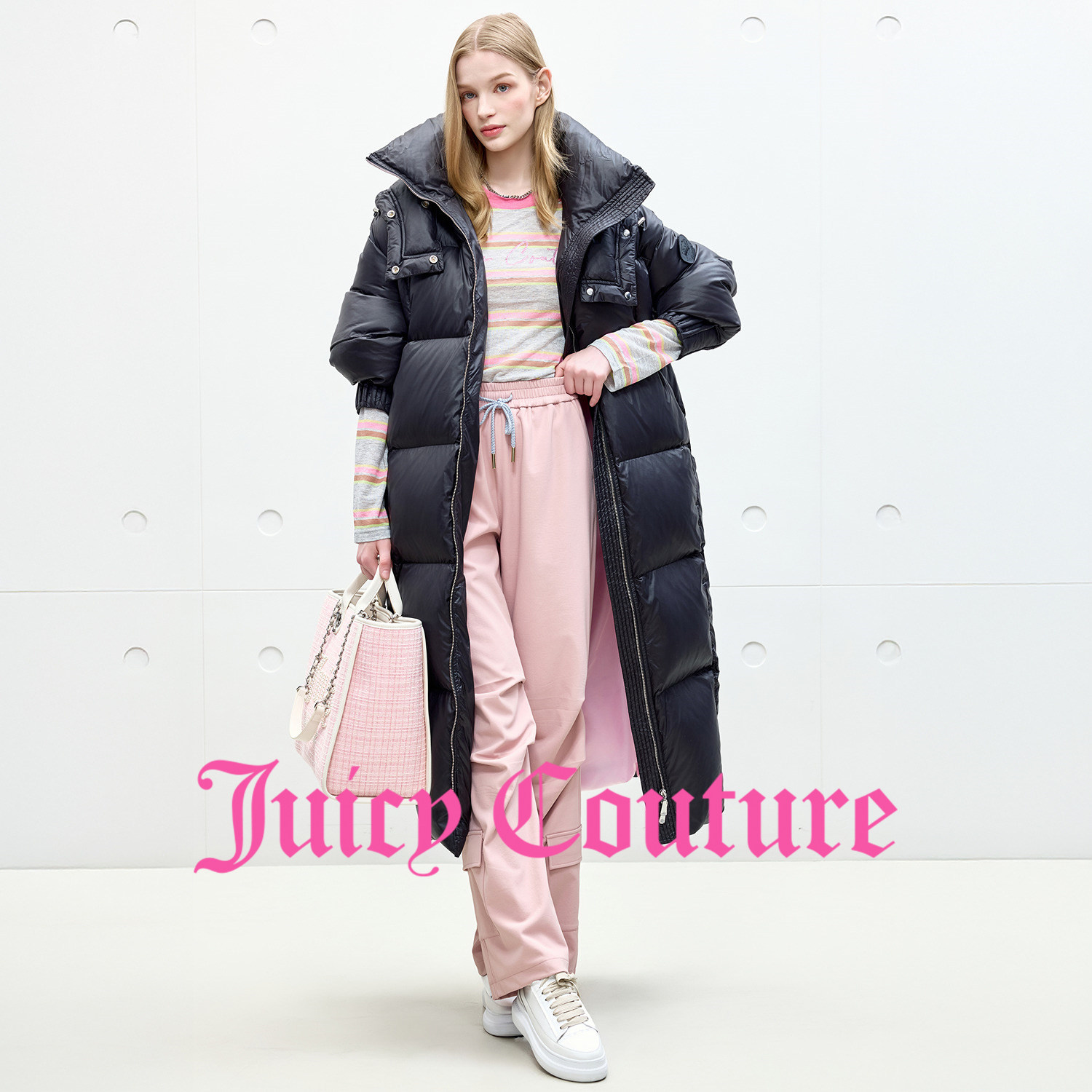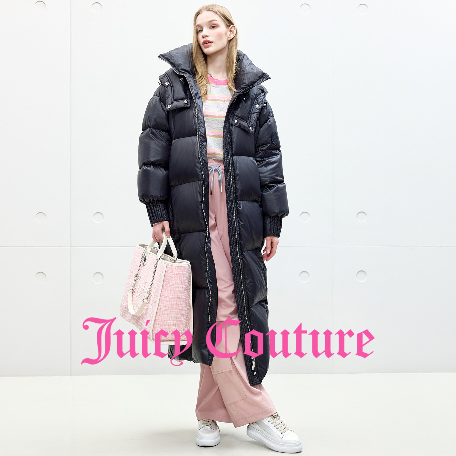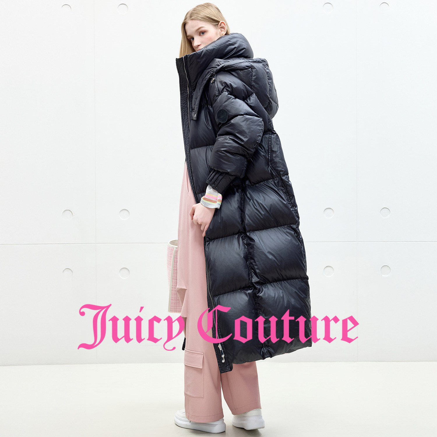 📚 【90白鸭绒】Juicy Couture橘滋羽绒服女黑色加厚保暖中长款外套