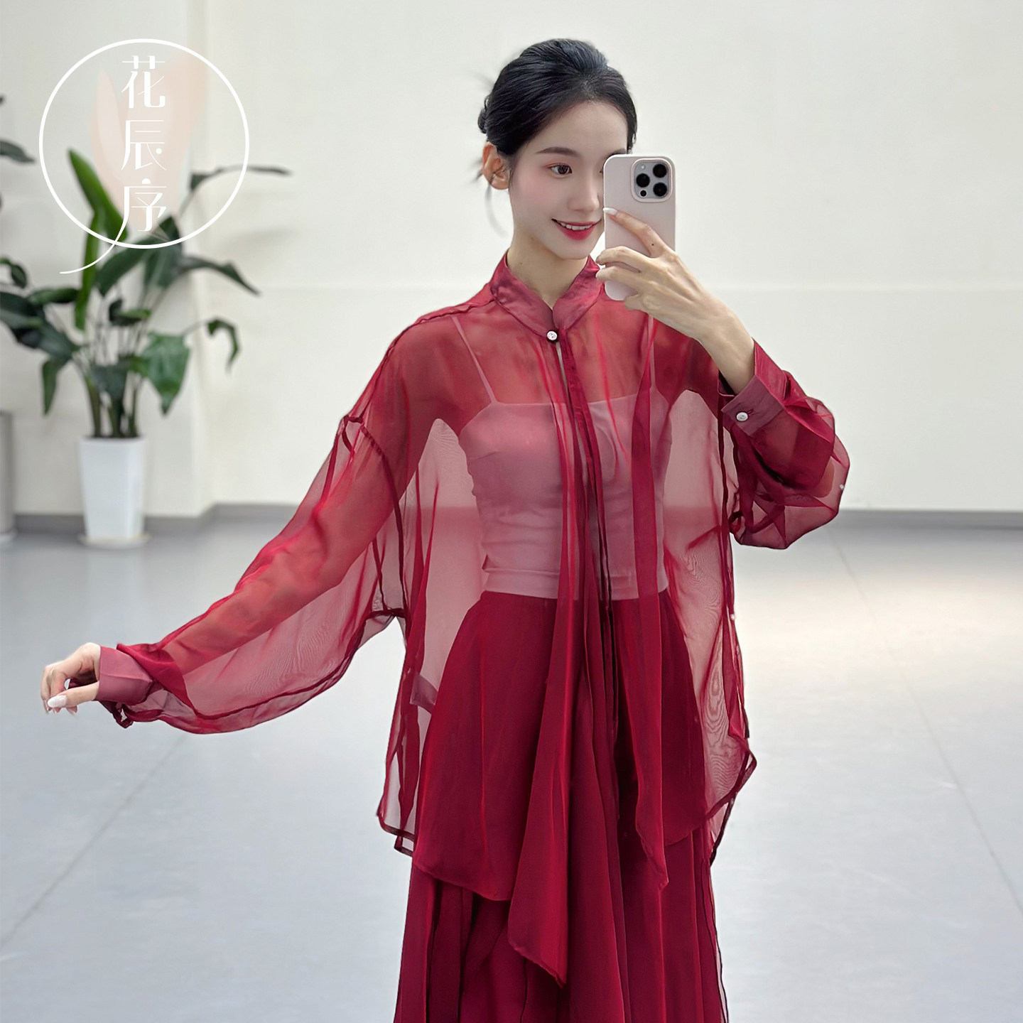 📚 花辰序古典舞蹈服装红色新中式飘逸衬衫套装中国现代舞练功服上衣