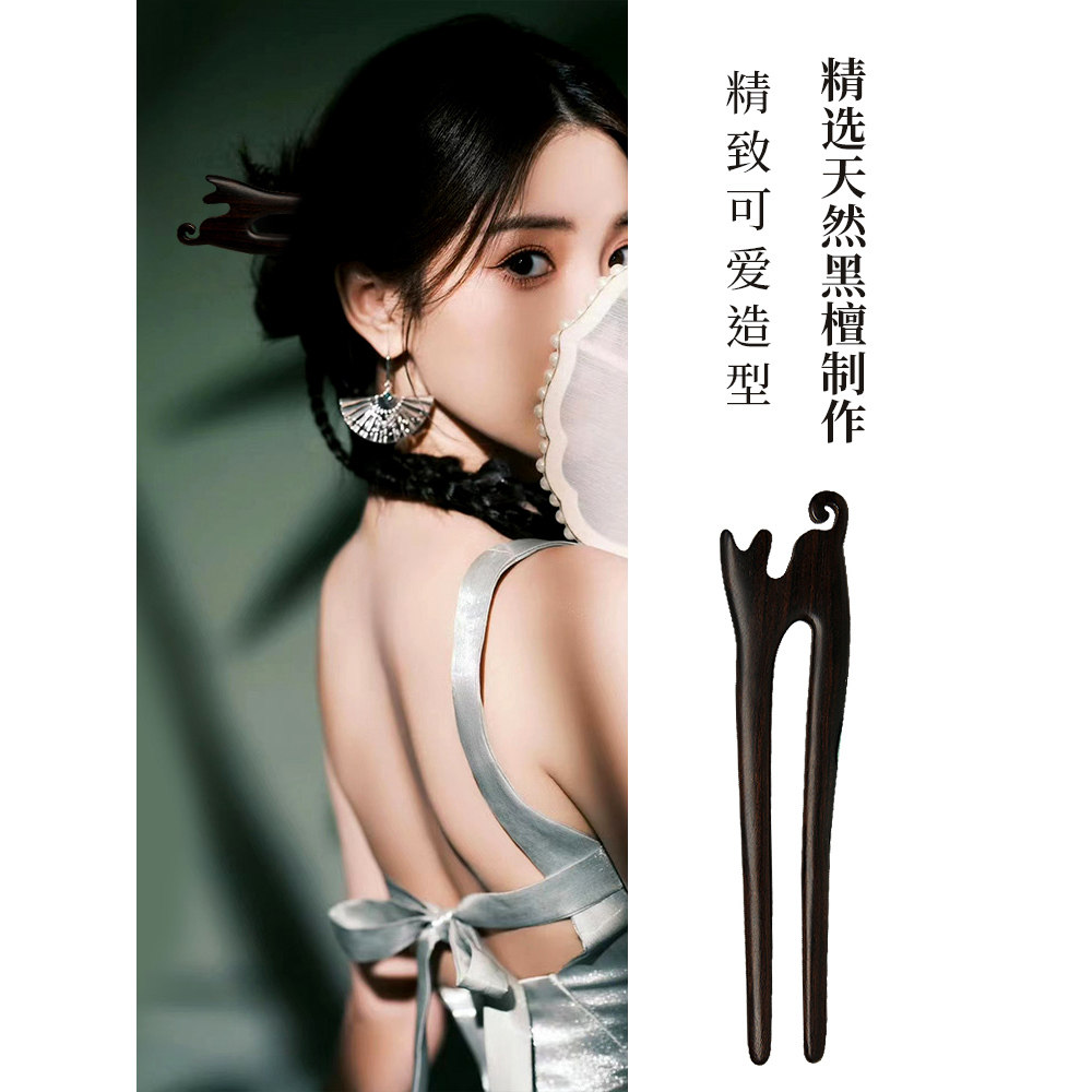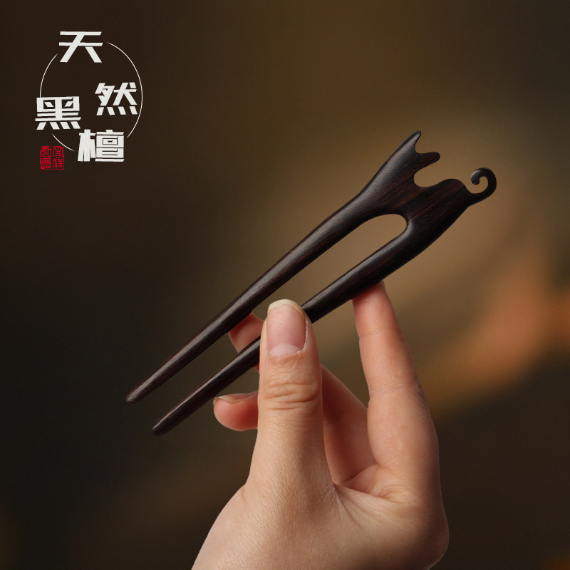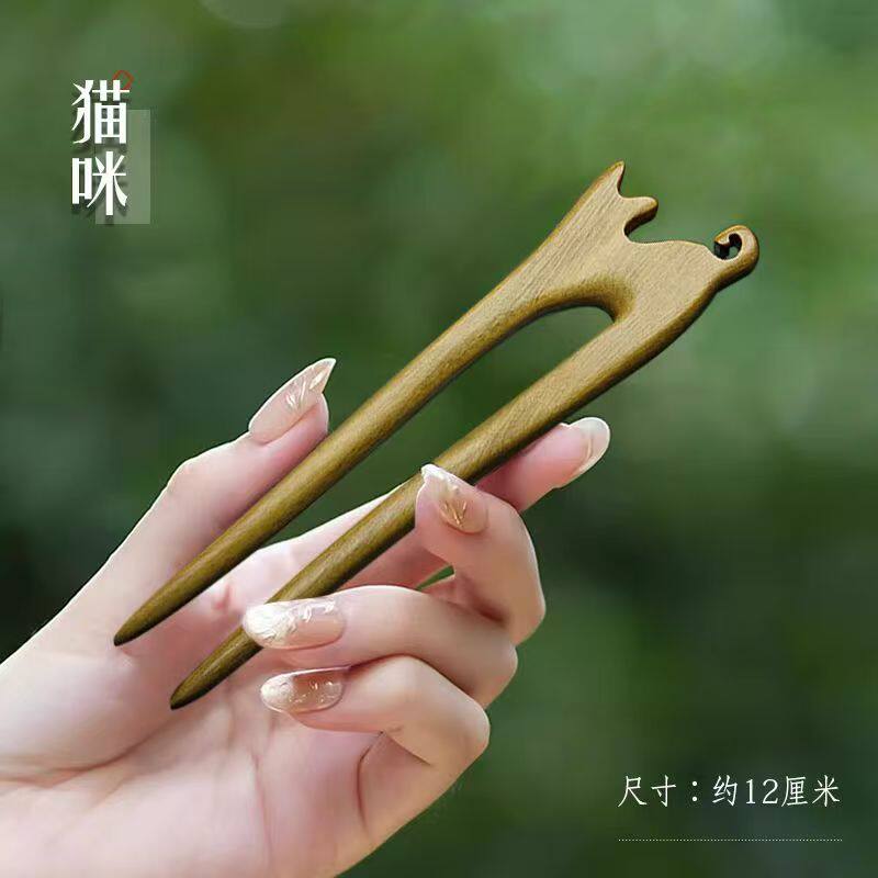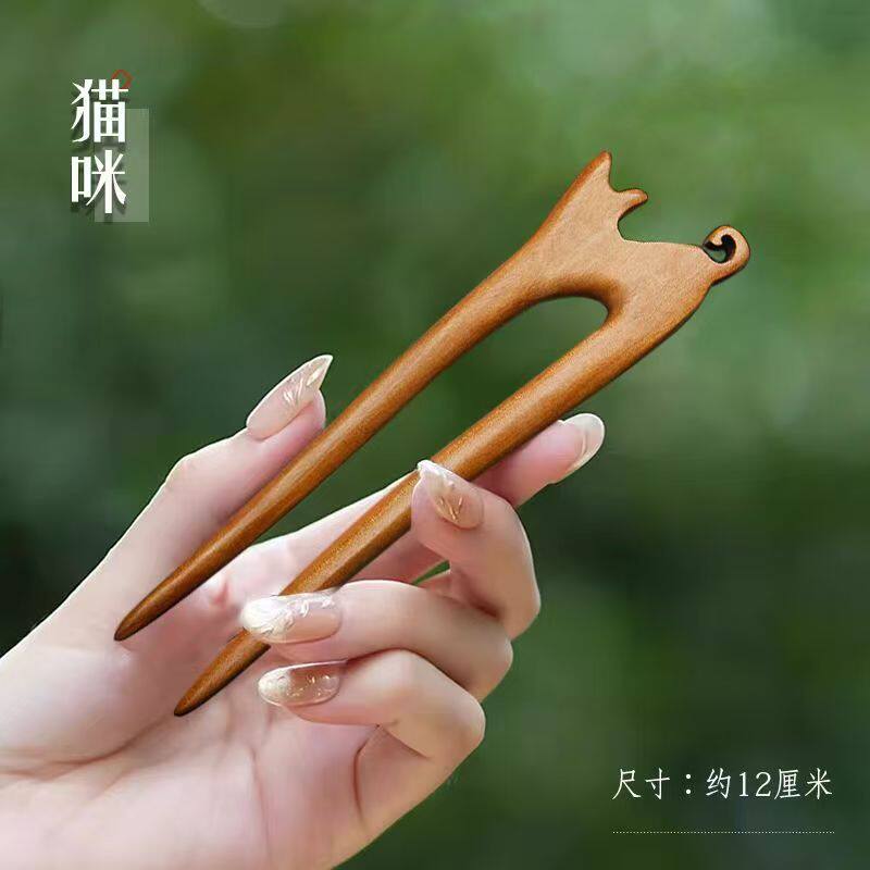 📚 美木兮中式复古檀木木质发簪女生古风桃木双钗盘头发简约发钗清雅