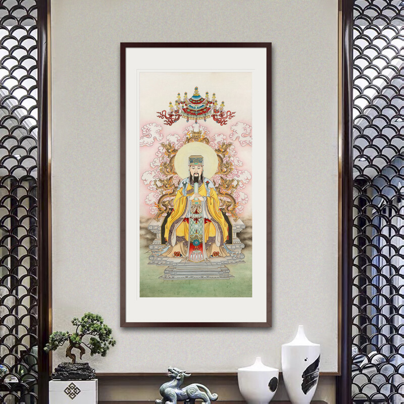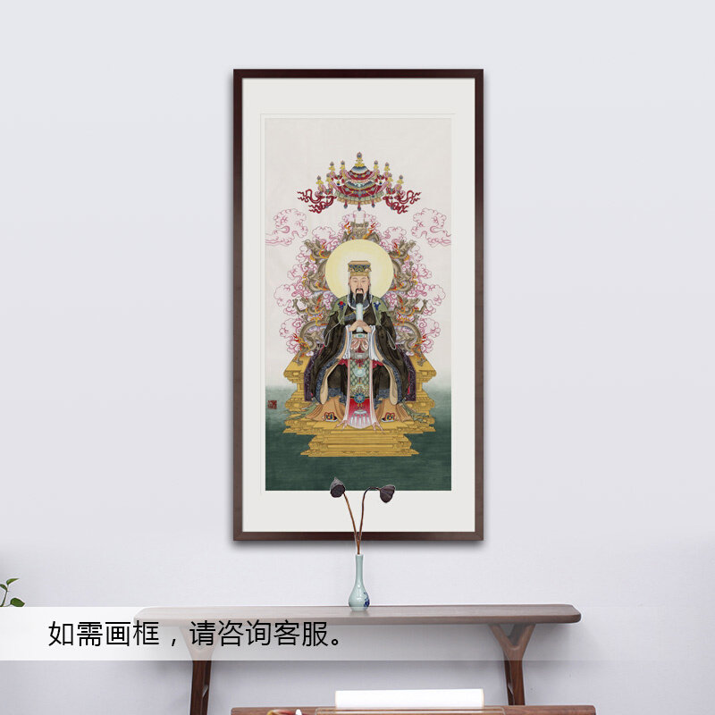 📚 工笔人物国画玉皇大帝画像水陆画玄关书房新中式画轴画框卷轴挂画