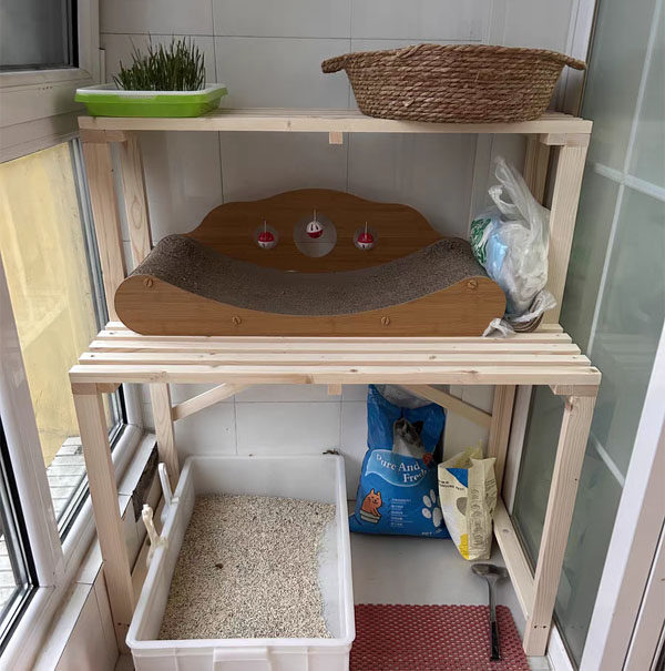 📚 实木猫爬架猫窝花架猫砂盆置物架多层宠物用品收纳阳台猫咪阶梯架