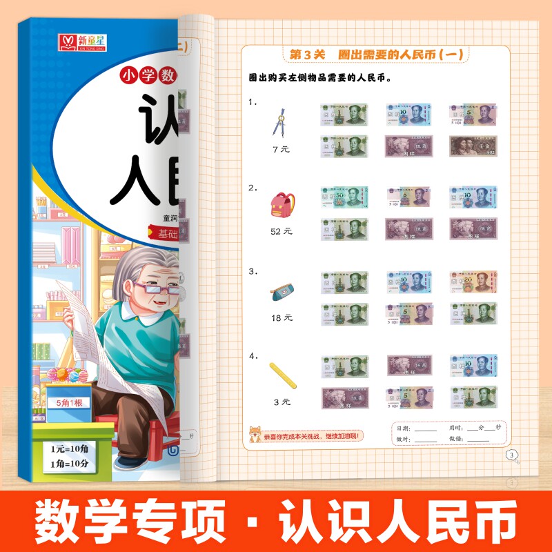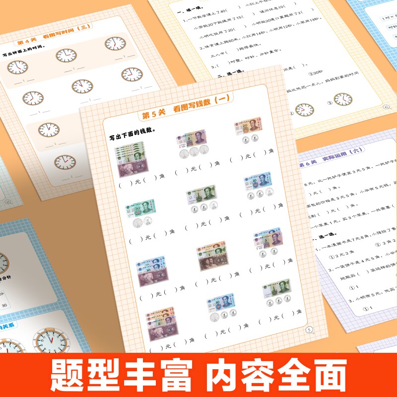 📚 2026小学数学专项训练一二三年级认识人民币学习教具一二年级小学生认识钟表和时间上下册数学思维教具图形单位换算元角分练习册