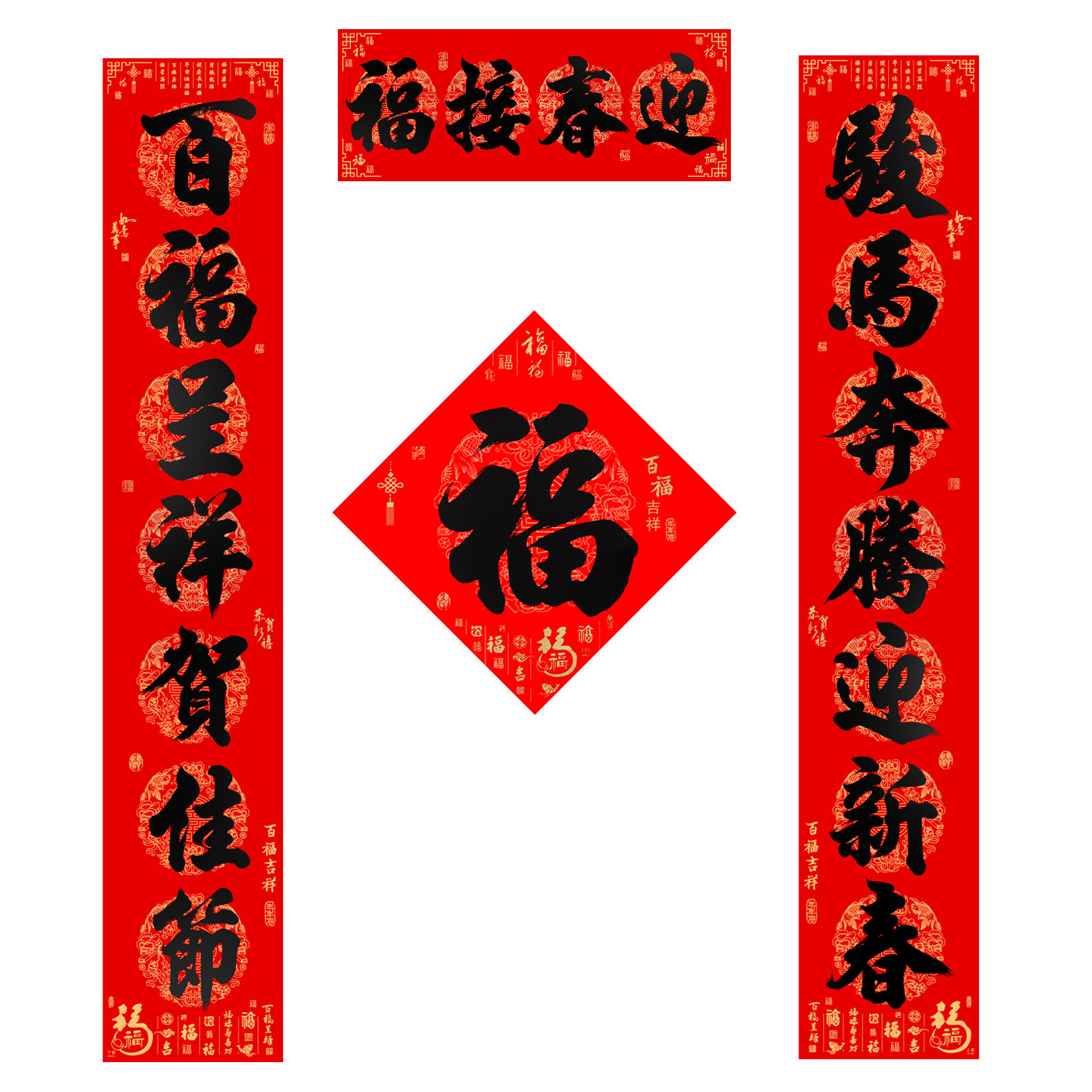 📚 年年好对联2026马年全背胶春联防水耐晒大门贴纸春节书法黑字对联