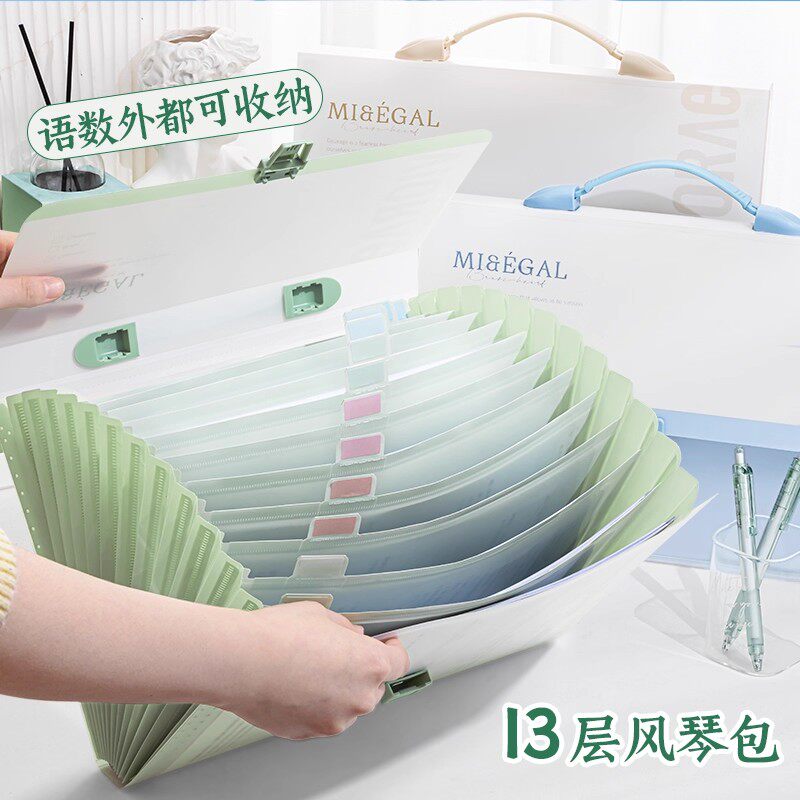 📚 得力风琴包收纳包初中生专用小学生风情包文件袋大容量13层试卷包手提式文件夹a4卷子科目分类整理神器高颜值