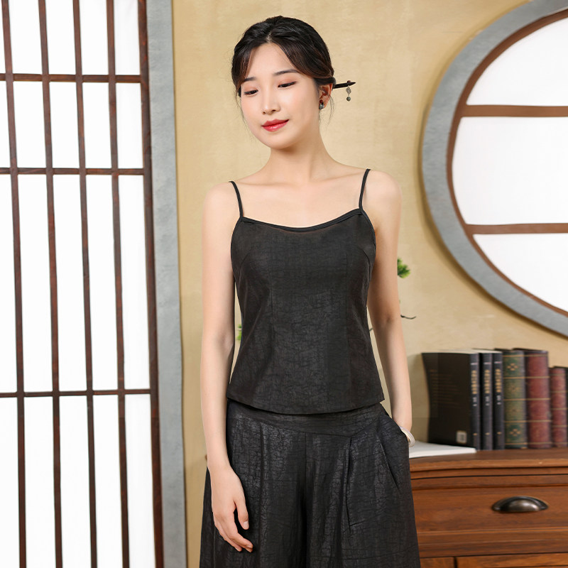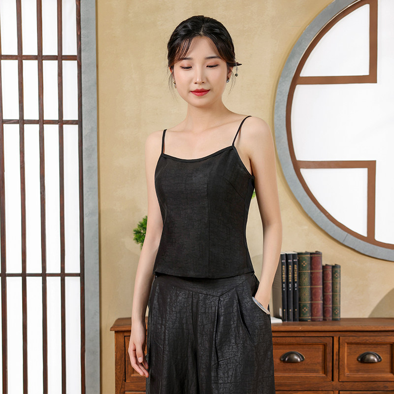 📚 蝶恋夏款龟裂纹香云纱拼接真丝双绉新中式吊带背心女
