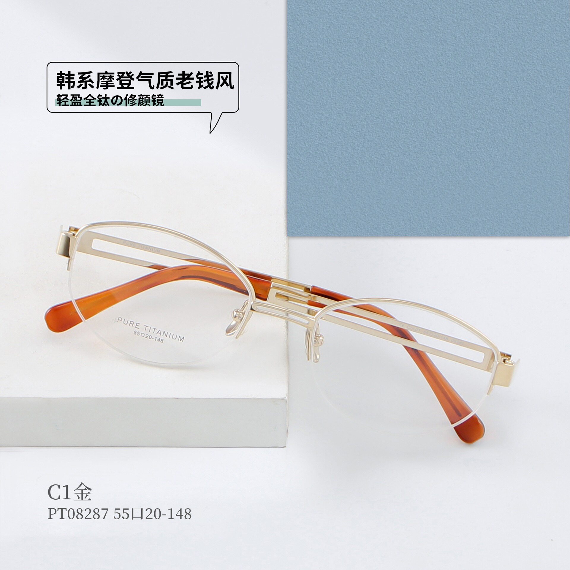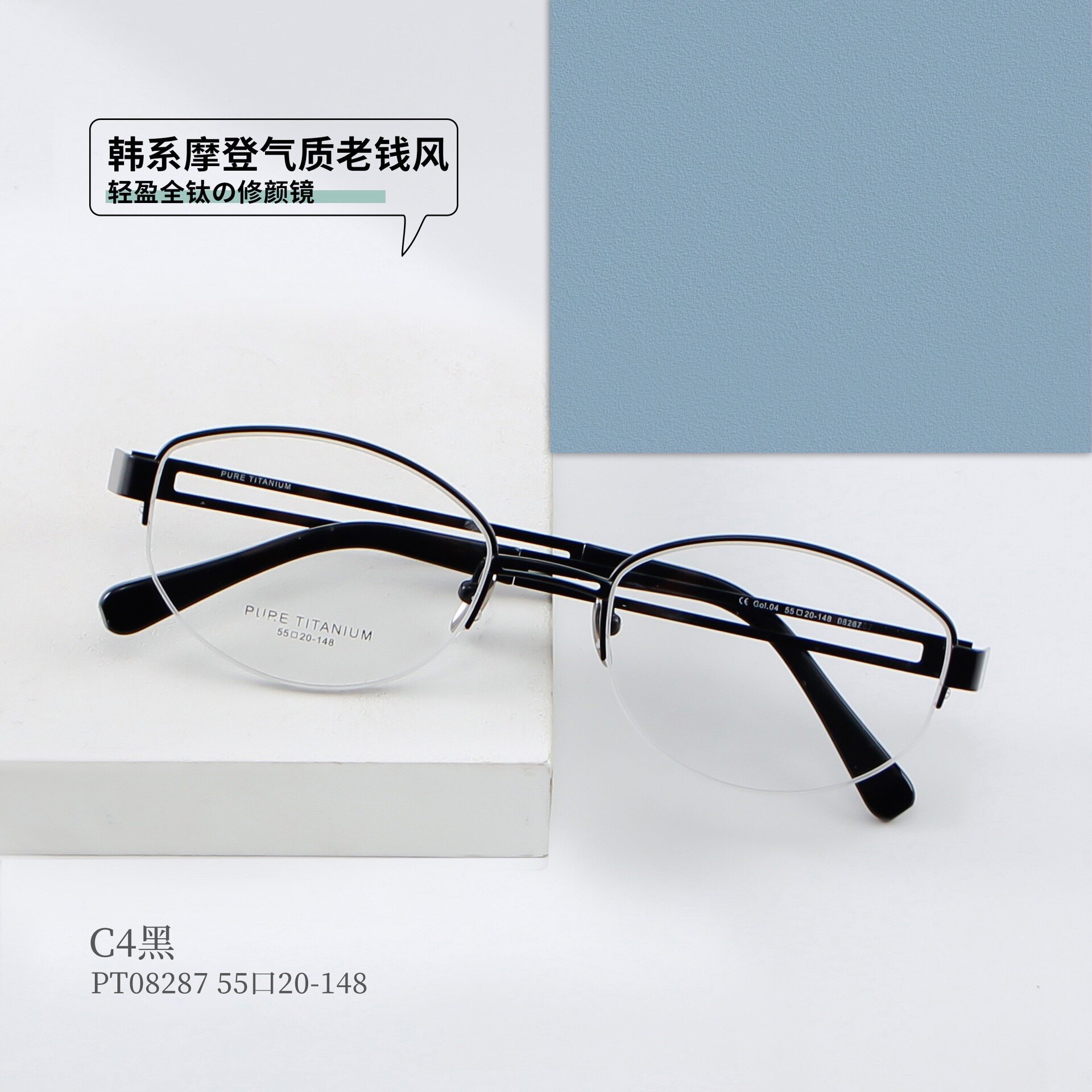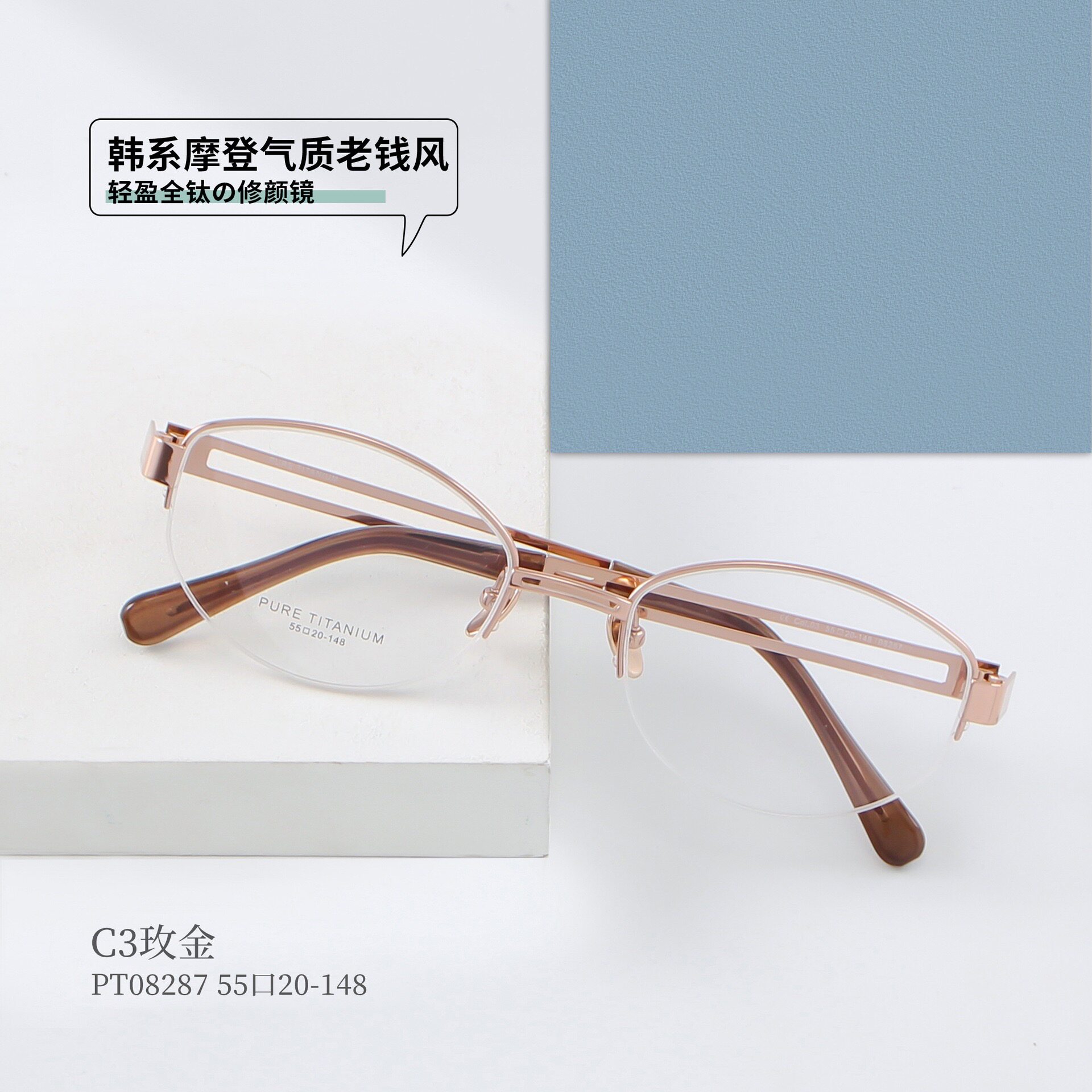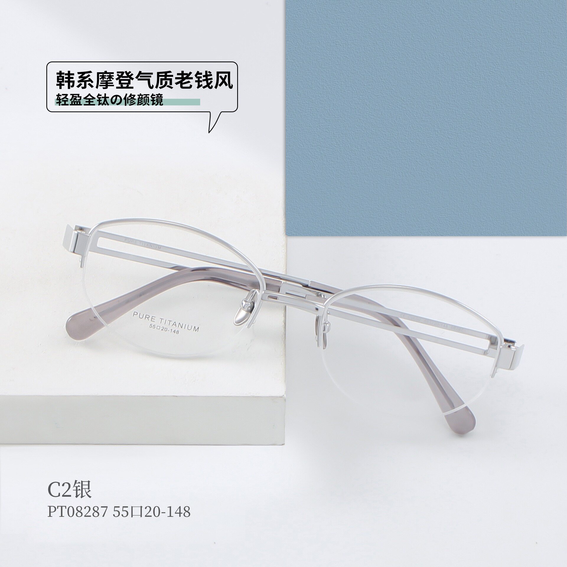 📚 韩雪PT08287高品质御姐纯钛拉丝半框眼镜架超轻配近视框镂空镜腿