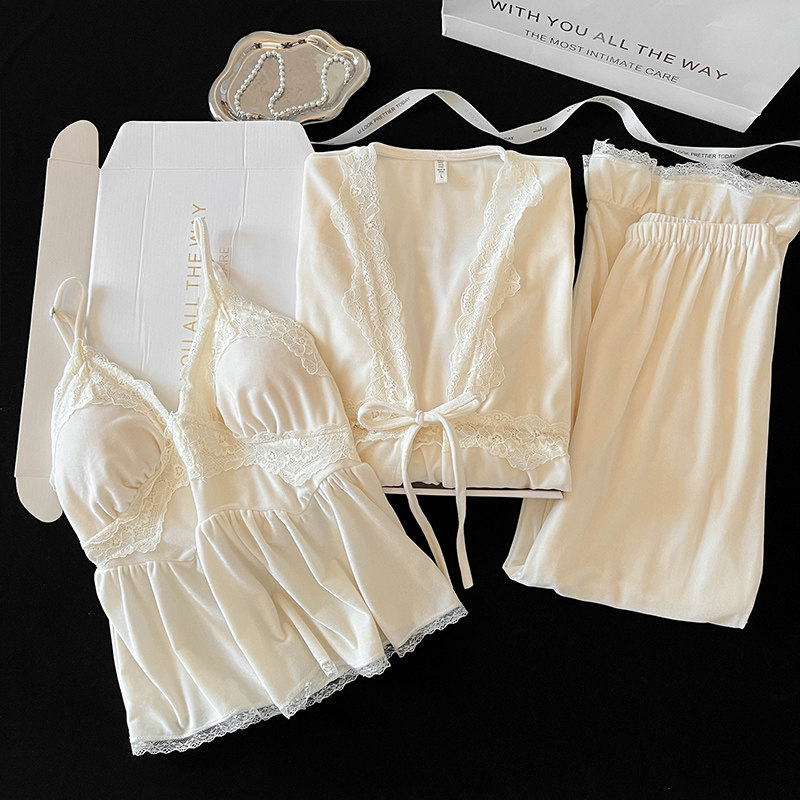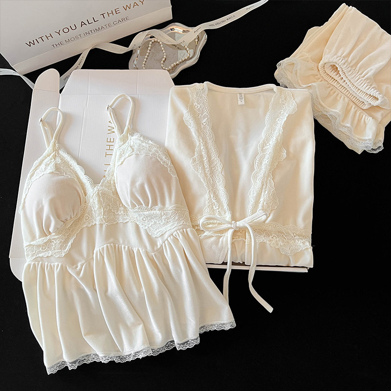 金丝绒胸垫家居服秋冬季风带
