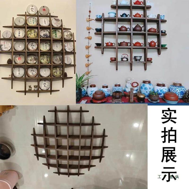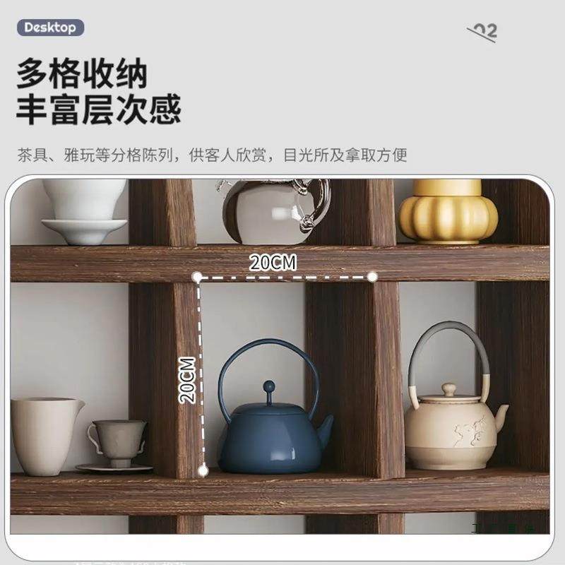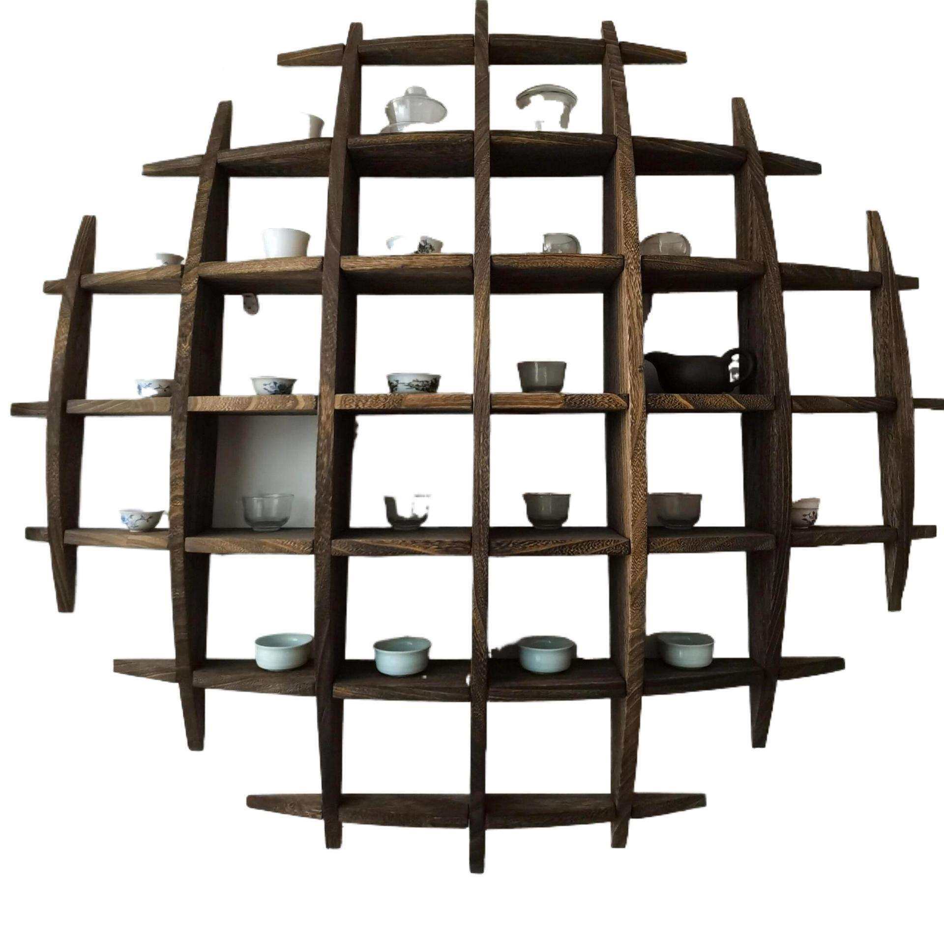 📚 茶室壁挂式复古博古架实木中式挂墙茶杯架多宝阁格架置物架展示架