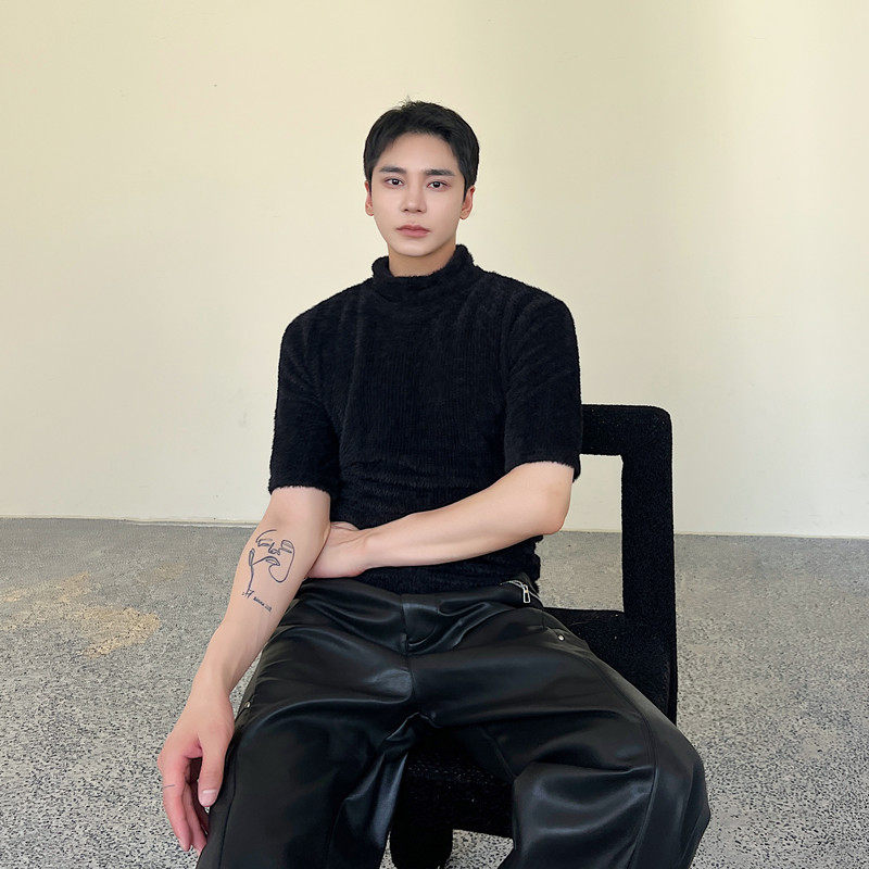 📚 套头修身毛茸茸纯色针织短袖上衣个性辣弟风毛衣潮A452-H113-P65