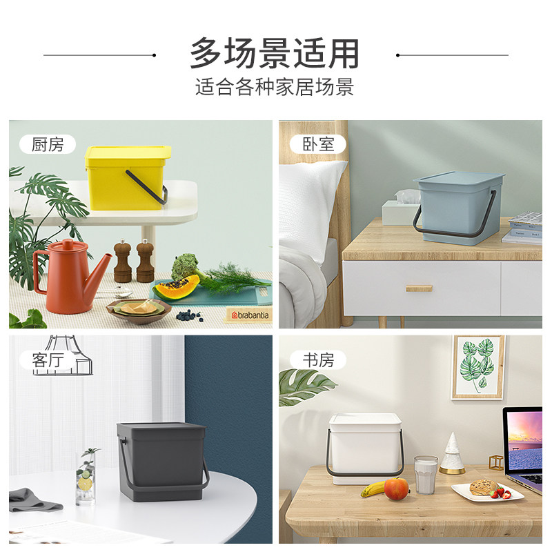📚 柏宾士brabantia桌面6L收纳桶分类家用方形壁挂带盖厨房垃圾桶