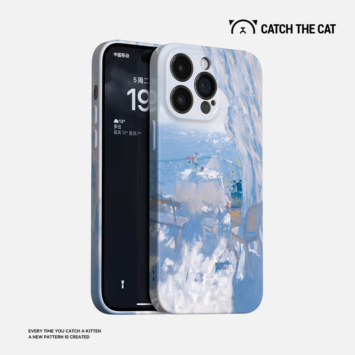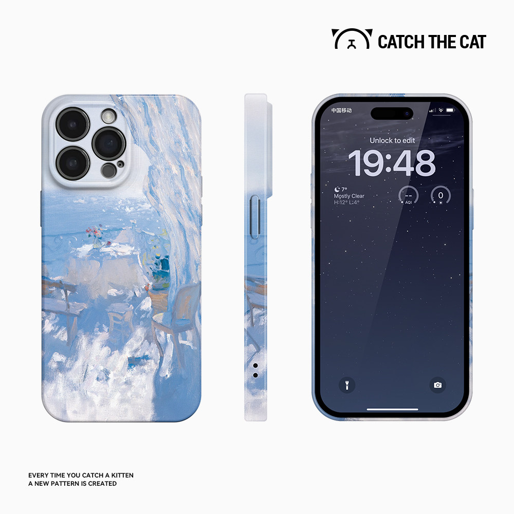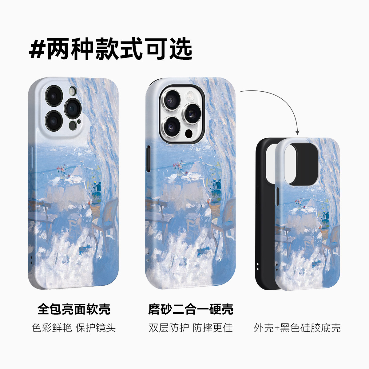 📚 海边阳台~清新艺术油画菲林适用iPhone15/16promax手机壳华为pura70软IQOOneo红米k70pro硬OPPOreno9/vivos18
