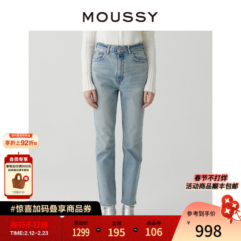 📚 MOUSSY 2023冬季新品经典水洗铅笔裤小脚牛仔裤女010GAA12-2730