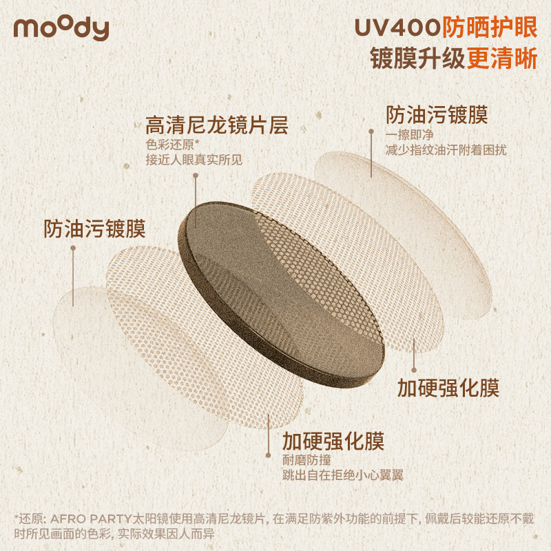 📚 moody Afro Party系列墨镜防紫外防晒椭圆框起伏Bounce太阳镜