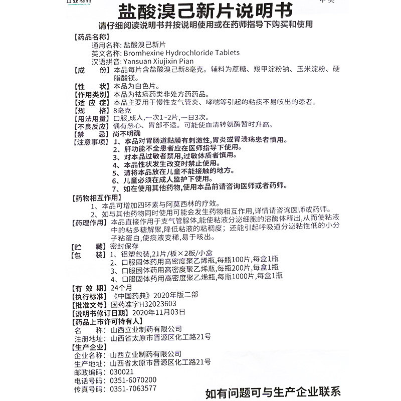📚 立业盐酸溴己新片100片已新片非必嗽平片支气管炎哮喘咳嗽药咳痰