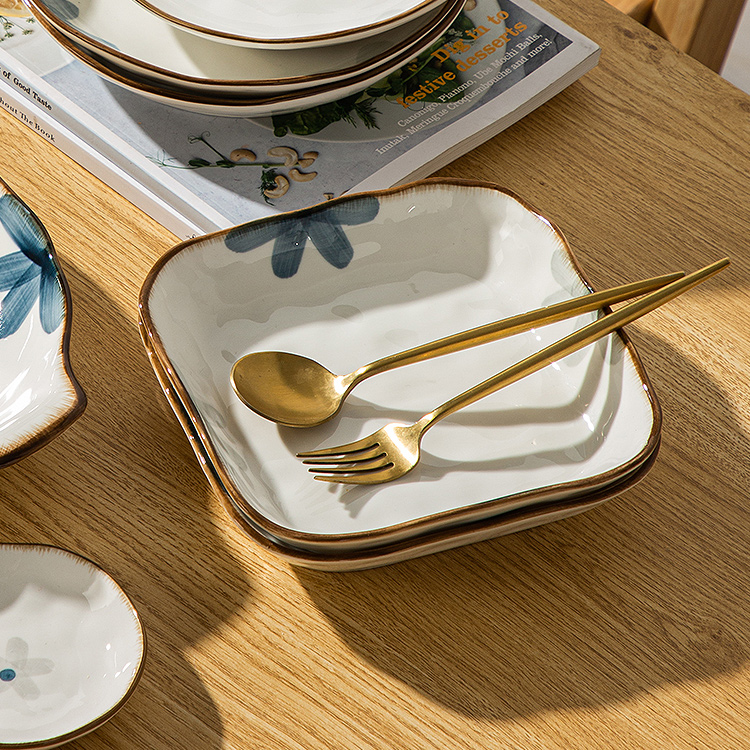 📚 2026新款日式釉下彩高颜值深盘菜盘子碟子家用陶瓷方盘餐盘餐具