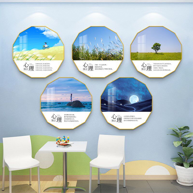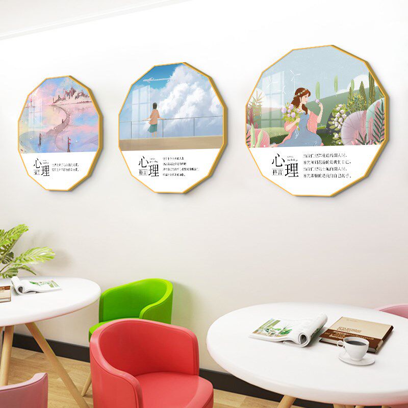 📚 心理学咨询室布置挂图心灵驿站健康辅导室心理解压画挂画装饰画