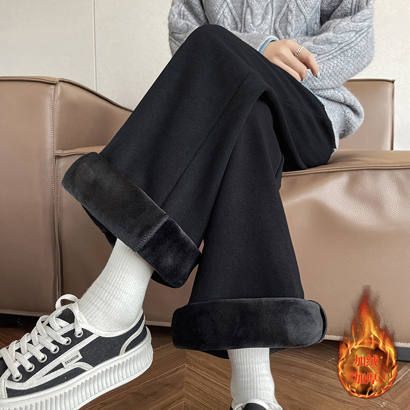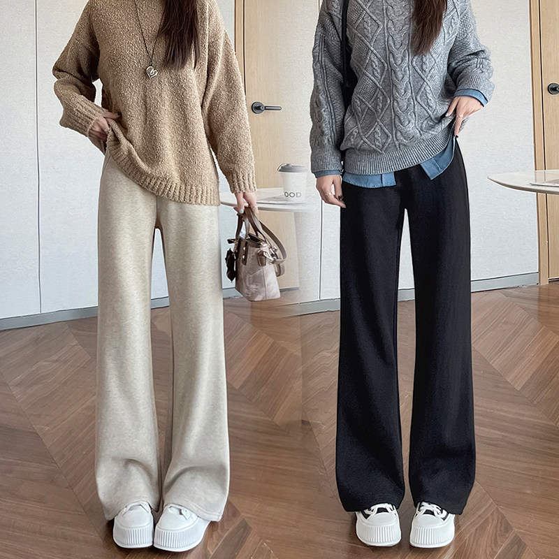 📚 150小矮个子糯米休闲宽松直筒微喇裤加绒秋冬新款松紧腰九分长裤