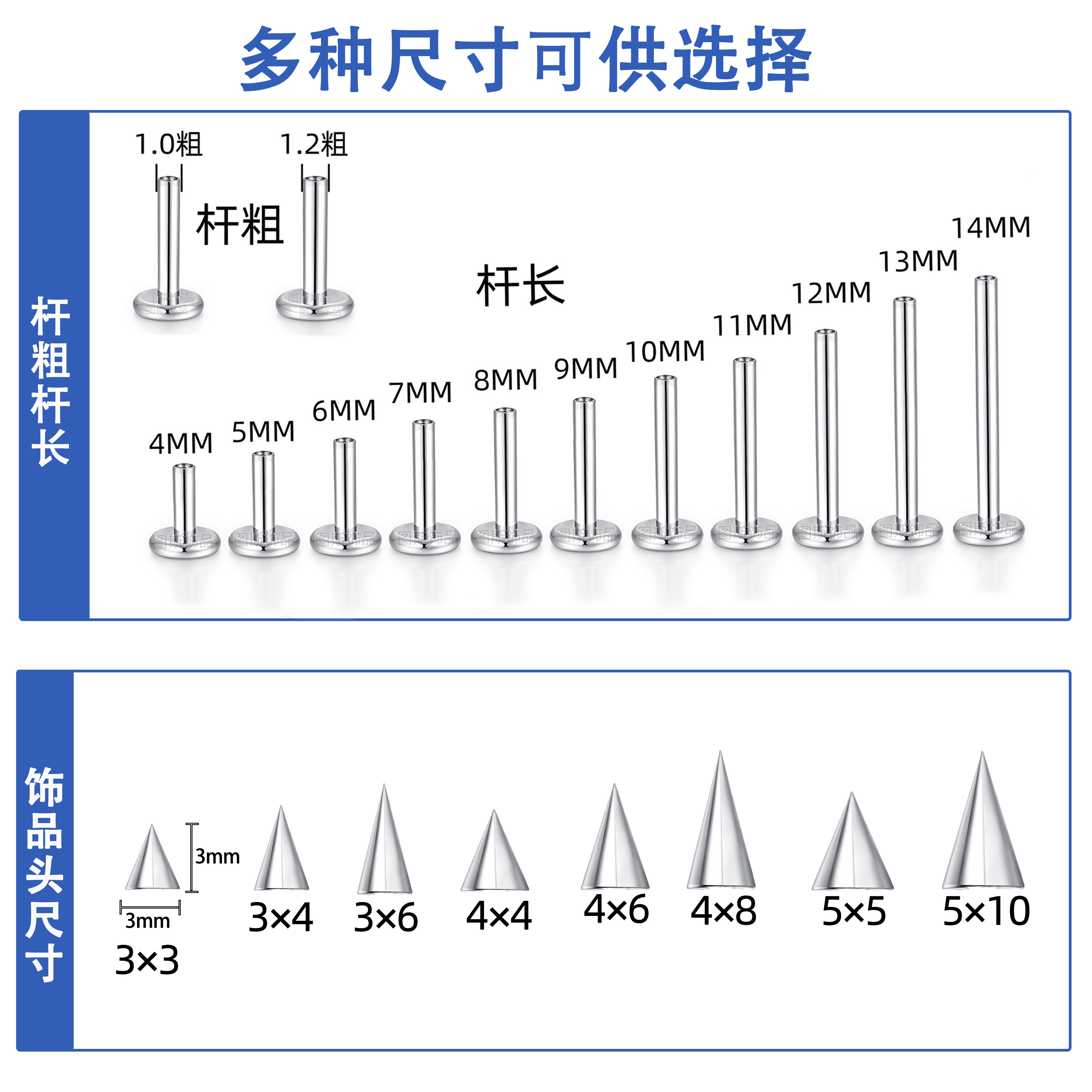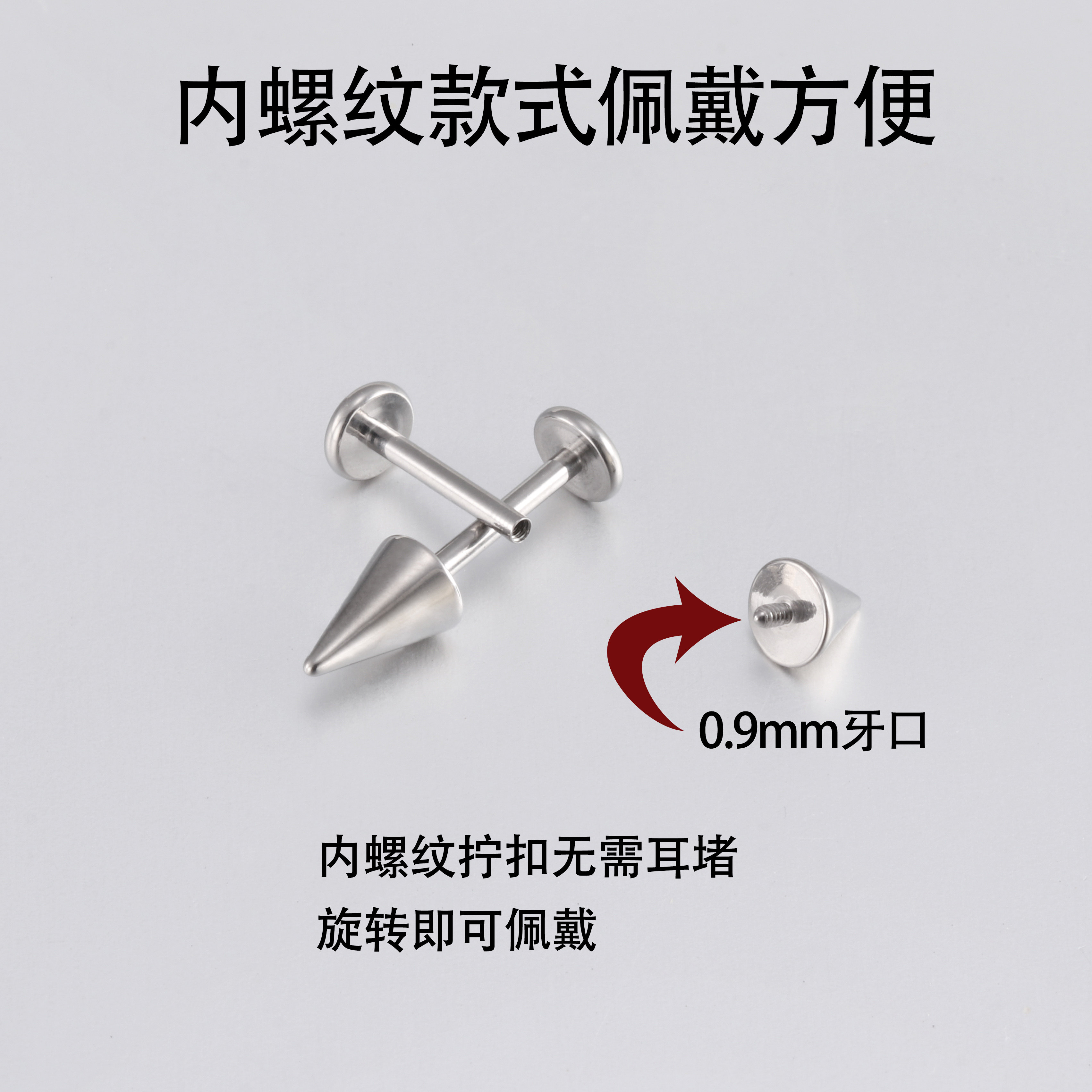 📚 F136钛合金恶魔耳钉男女唇钉防过敏穿刺尖锥螺纹平底耳骨钉