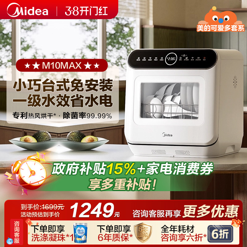 📚 美的可爱多台式洗碗机全自动家用4套免安装洗烘一级水效M10Max