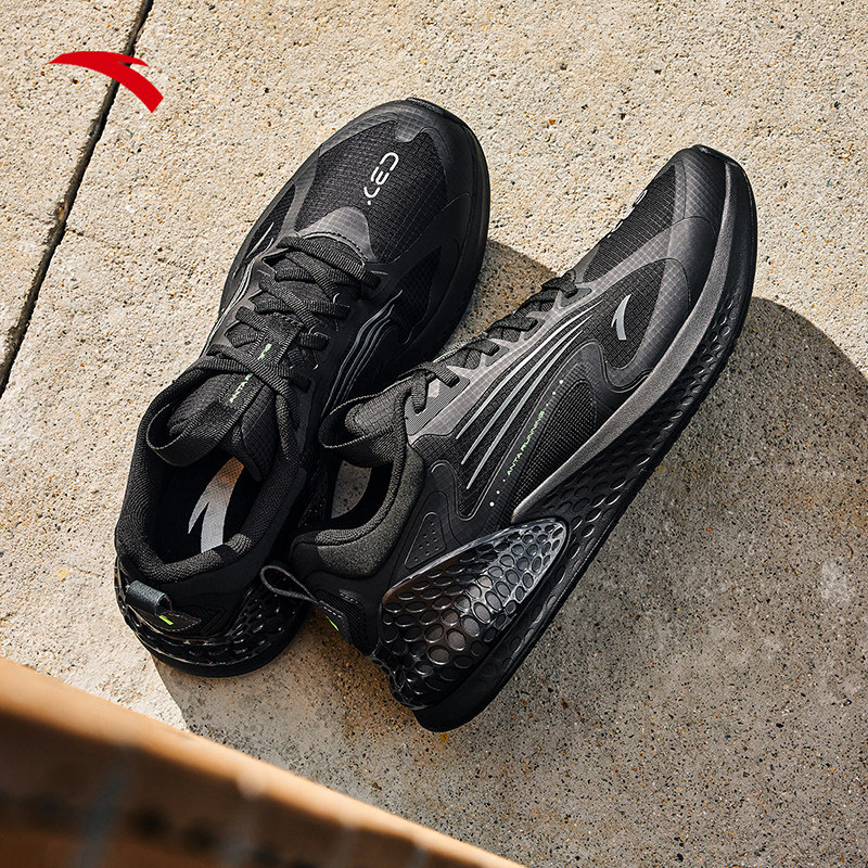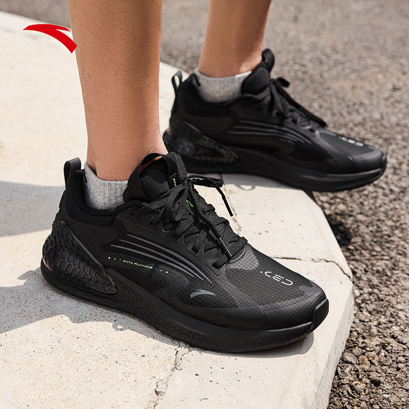 📚 安踏C37+男鞋跑步鞋春季新款软底减震休闲通勤黑色黑武士运动鞋子