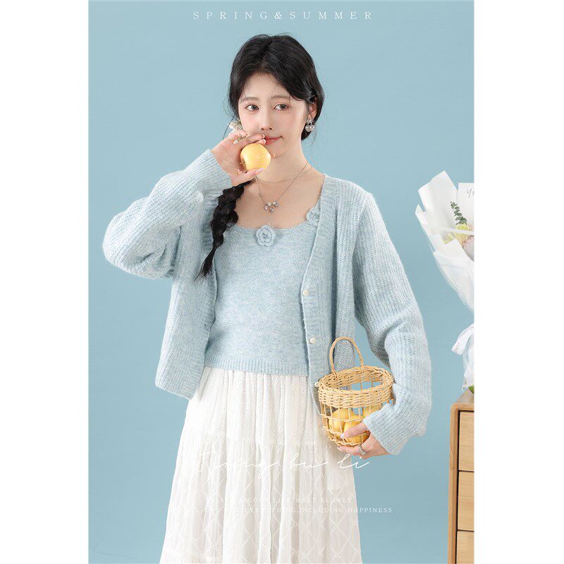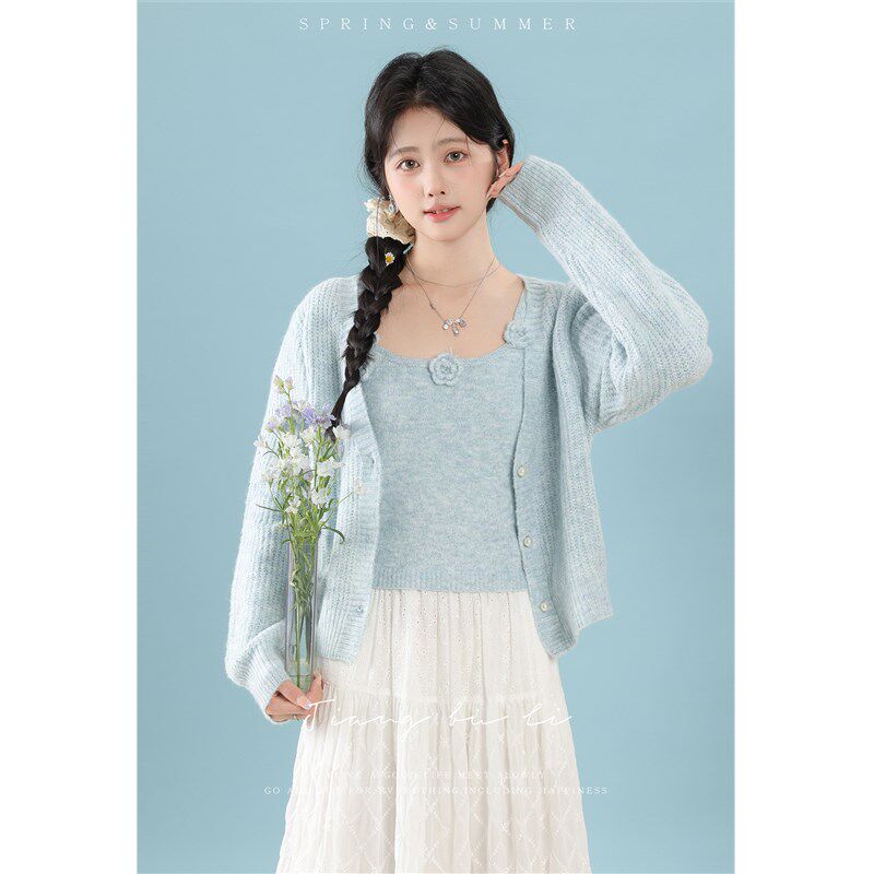 📚 江不离【春日私语】针织开衫背心吊带两件套2025新款套装穿搭女春