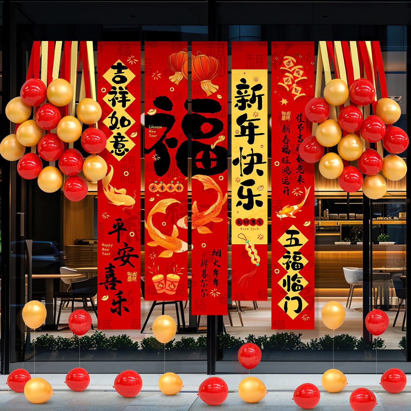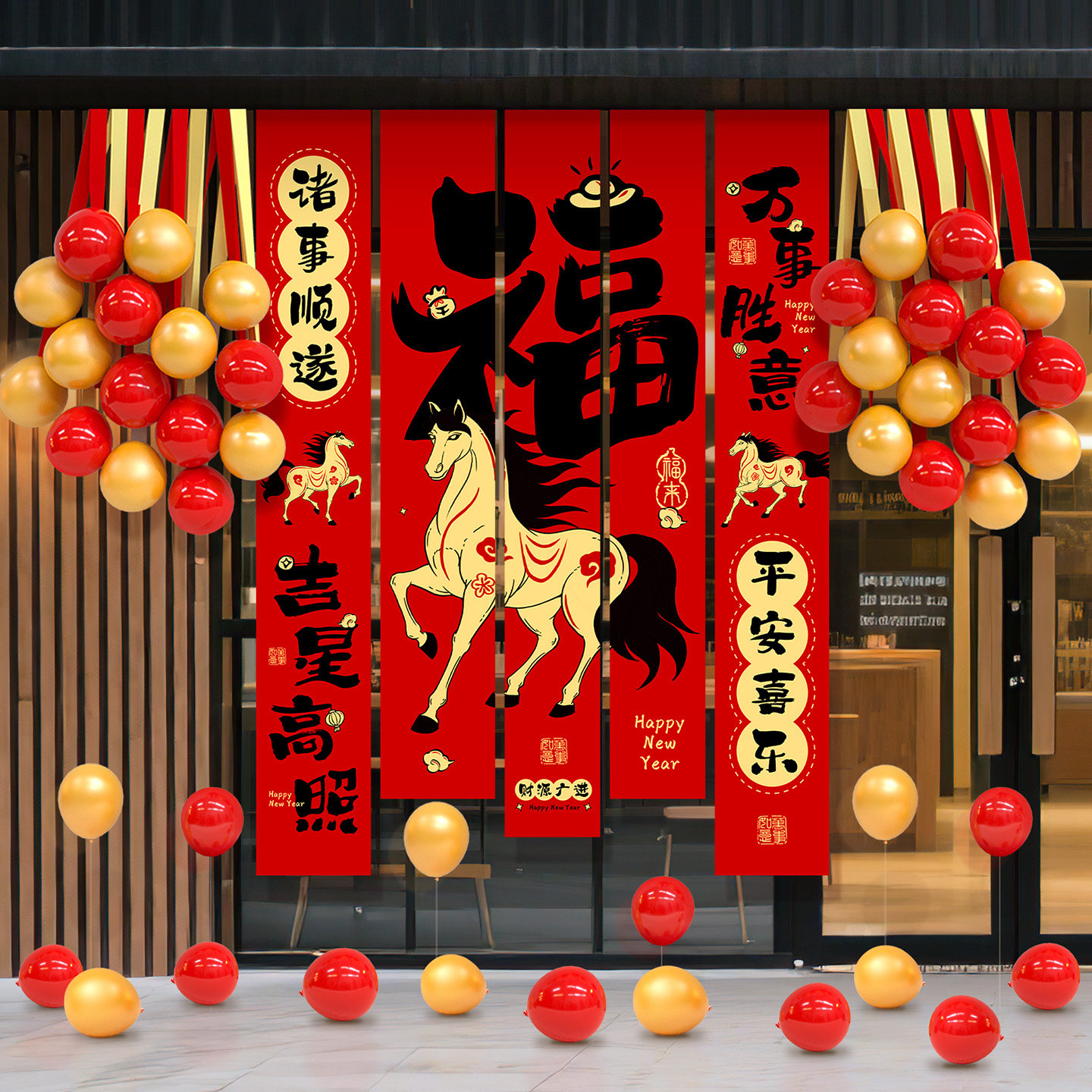 📚 2026元旦挂布新年装饰气球条幅学校幼儿园公司商场马年布置背景墙