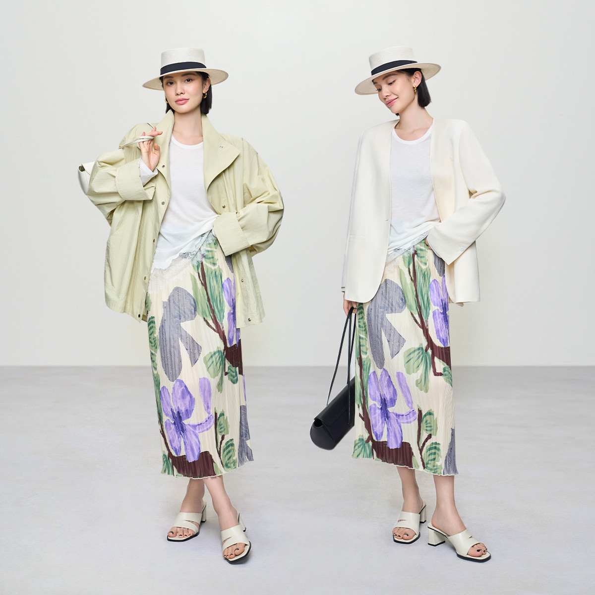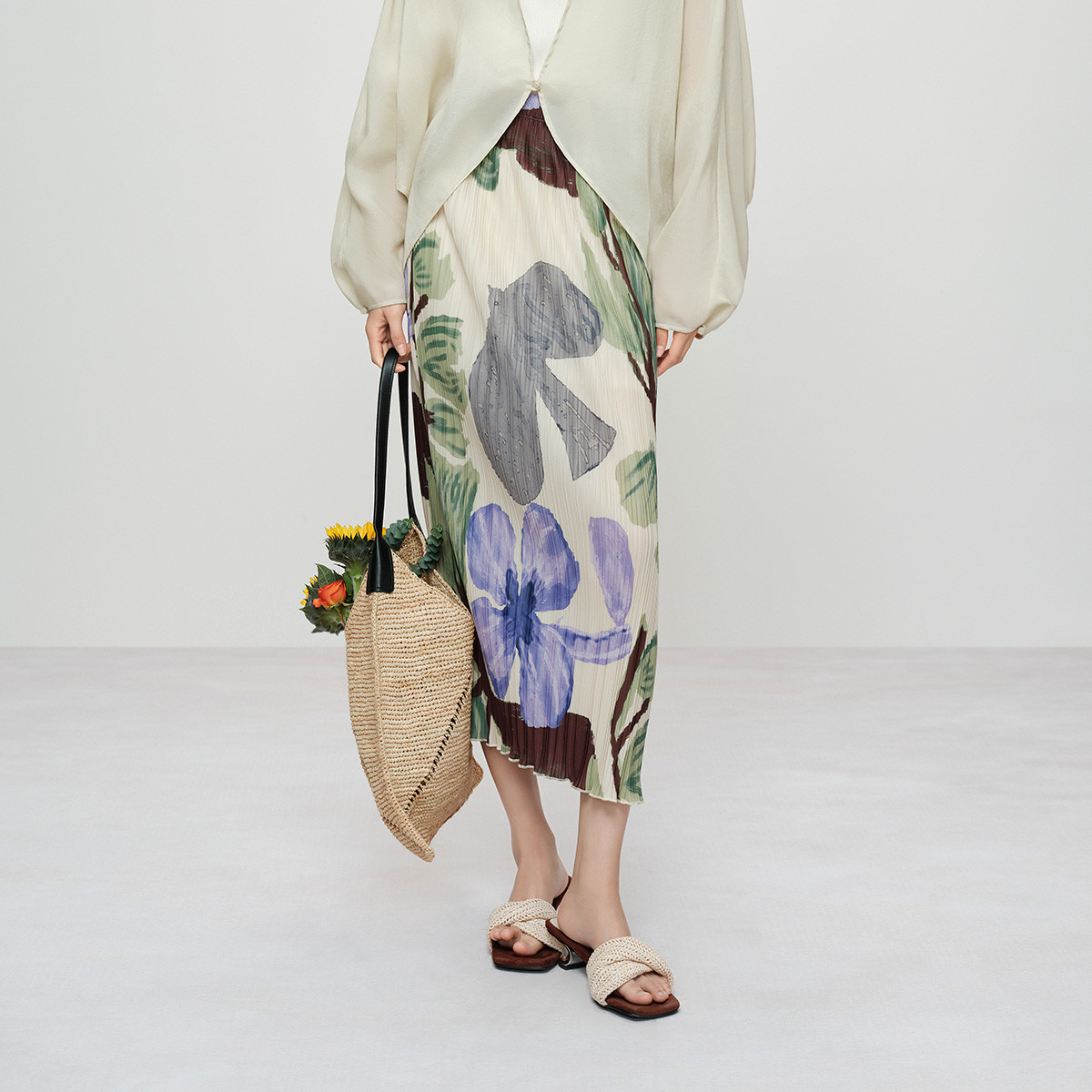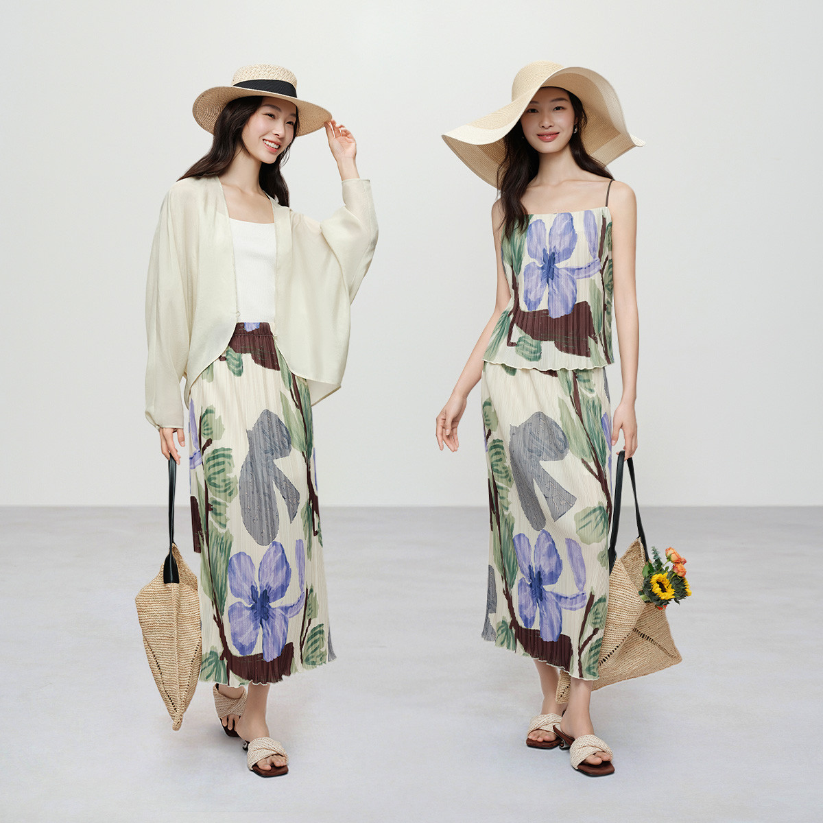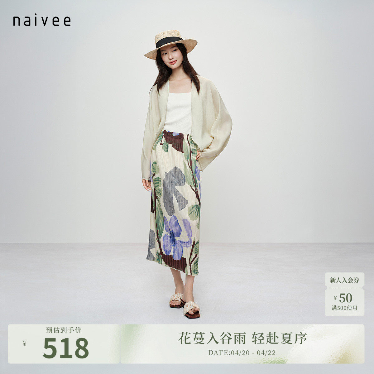 📚 【紫罗海岸】三宅风压褶印花naivee纳薇26夏新款半身裙度假海边