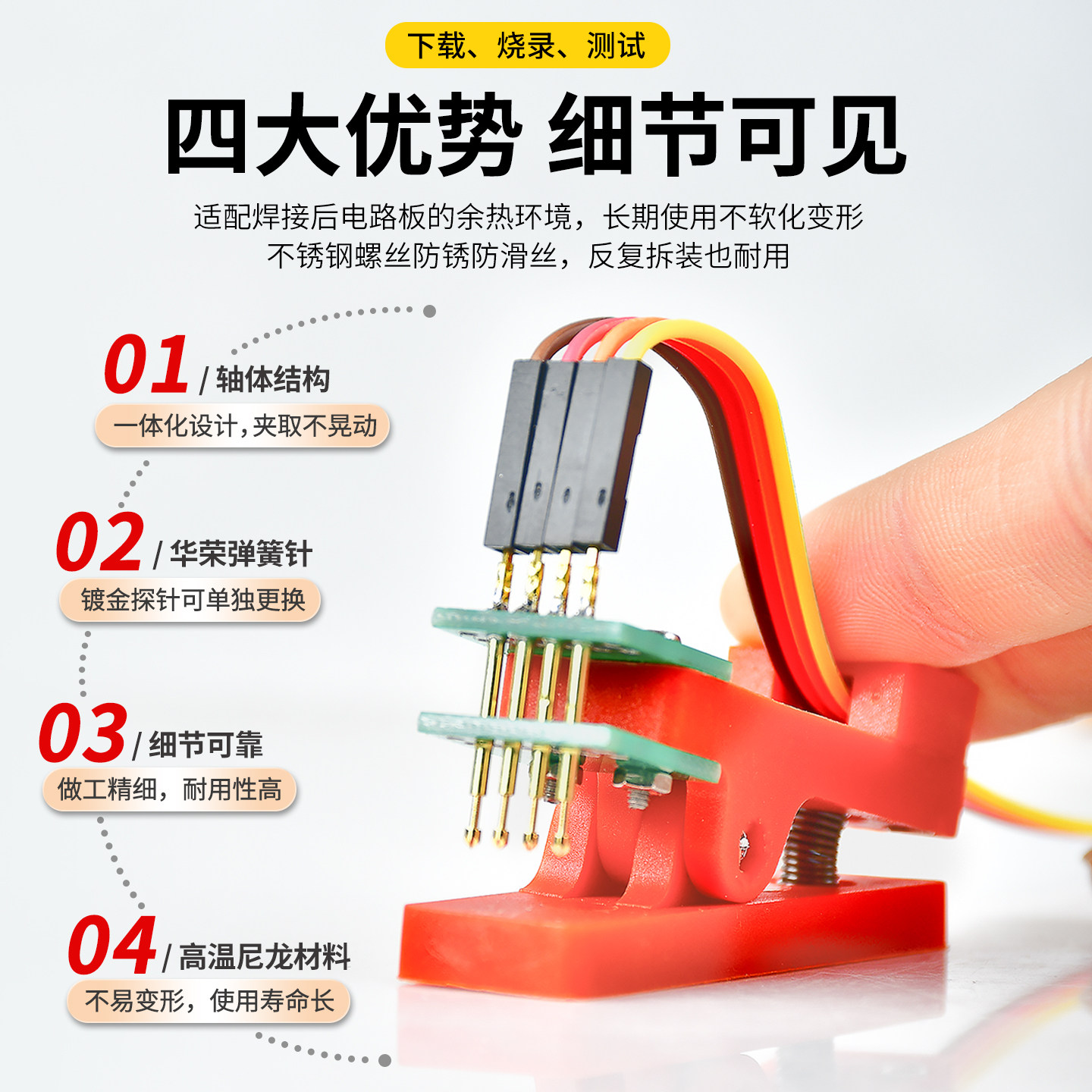 📚 PCB夹子烧录夹具测试夹探针下载程序编程器2.54/2.0/1.27双排单排