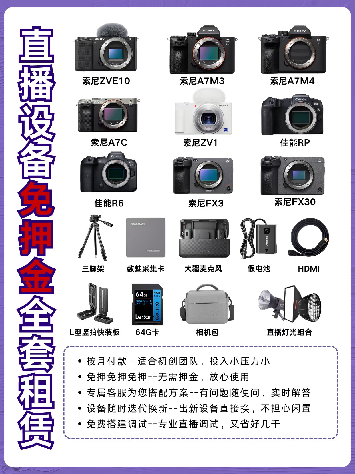 📚 直播设备全套租赁 美颜声卡精调 全国可做 免费上门搭建调试 免押