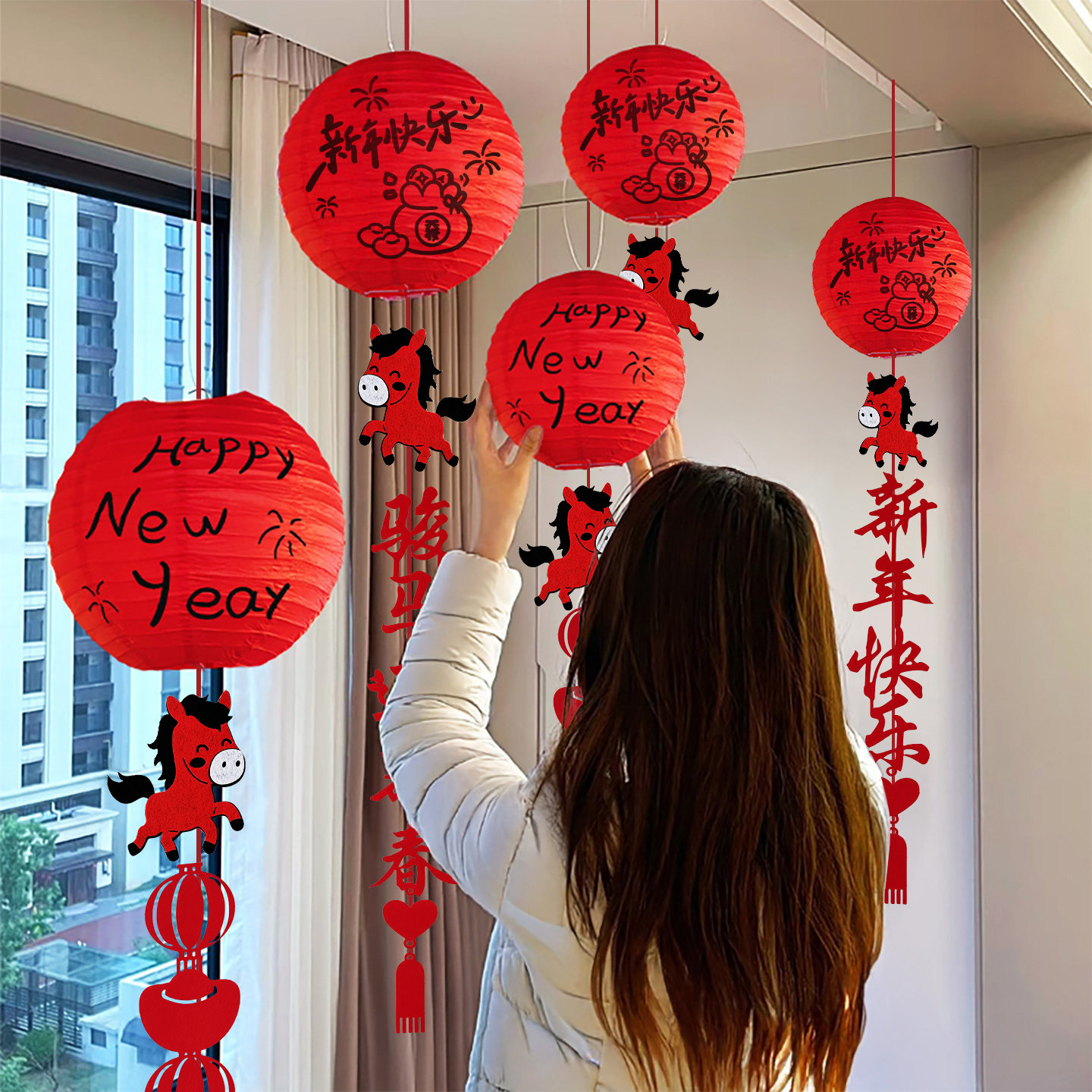 📚 新年客厅吊顶福字红灯笼装饰品新款挂饰春节2026场景家庭氛围布置