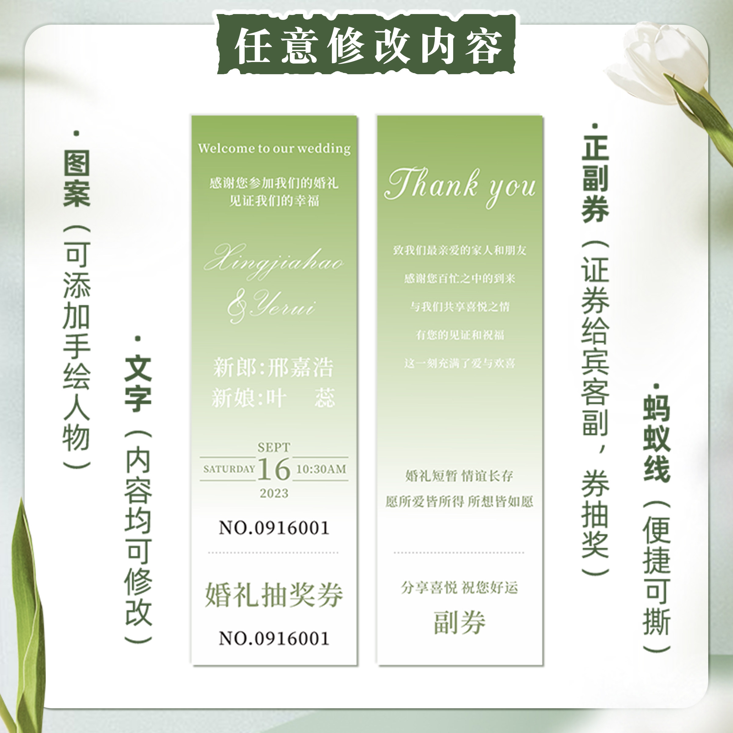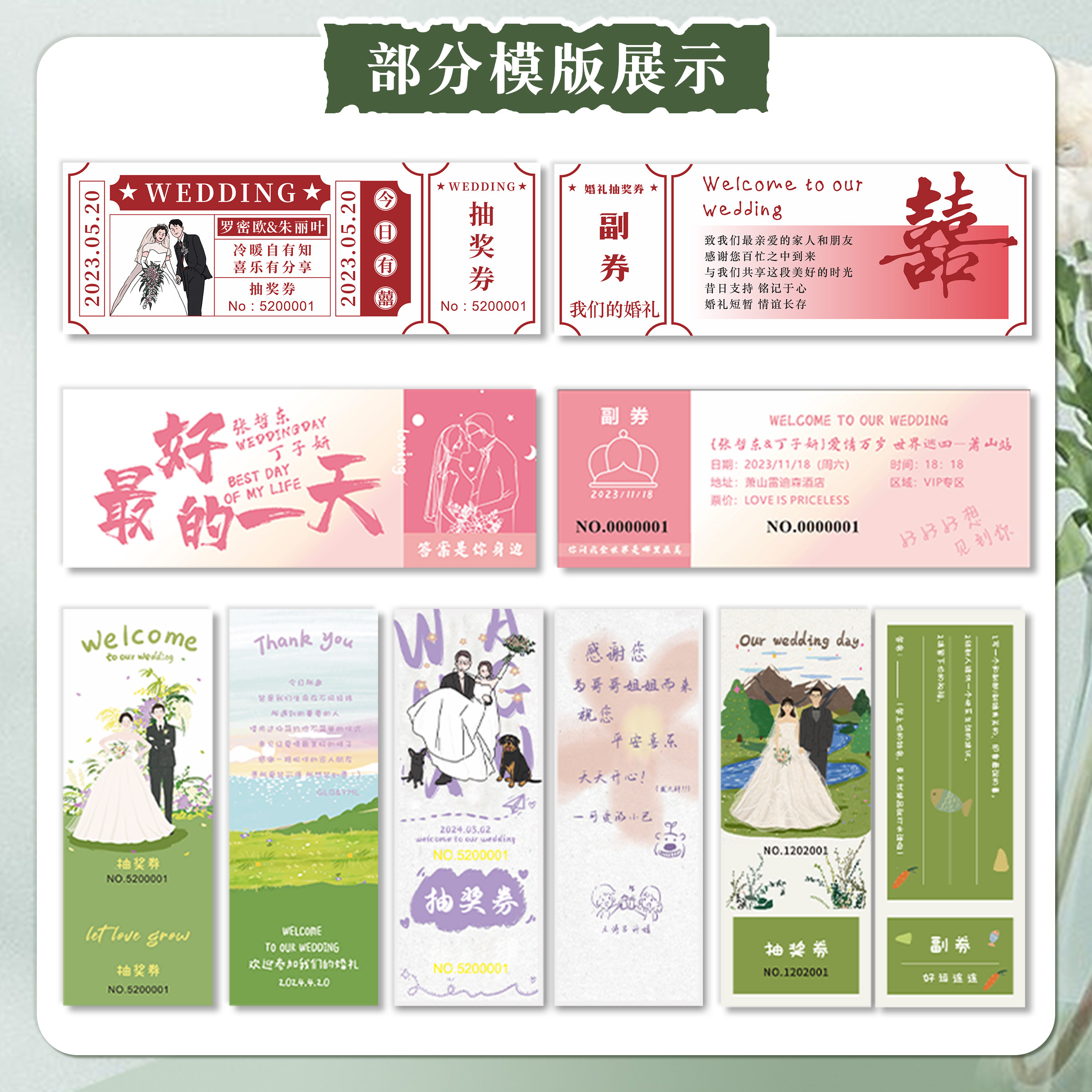 📚 婚礼抽奖券定制号码票根正副电影结婚奖卷卡片订婚宴游园会入场券