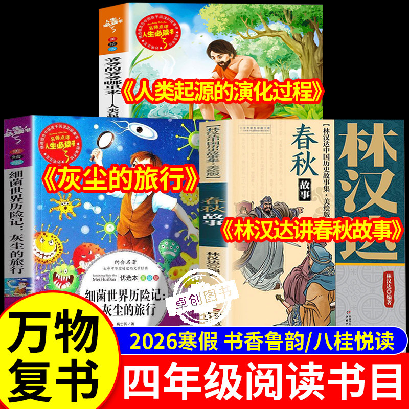 📚 2026寒假书香鲁韵万物复书四年级下册必读课外书全套3册 八桂悦读灰尘的旅行人类起源的演化过程林汉达讲中国历史故事春秋故事复苏