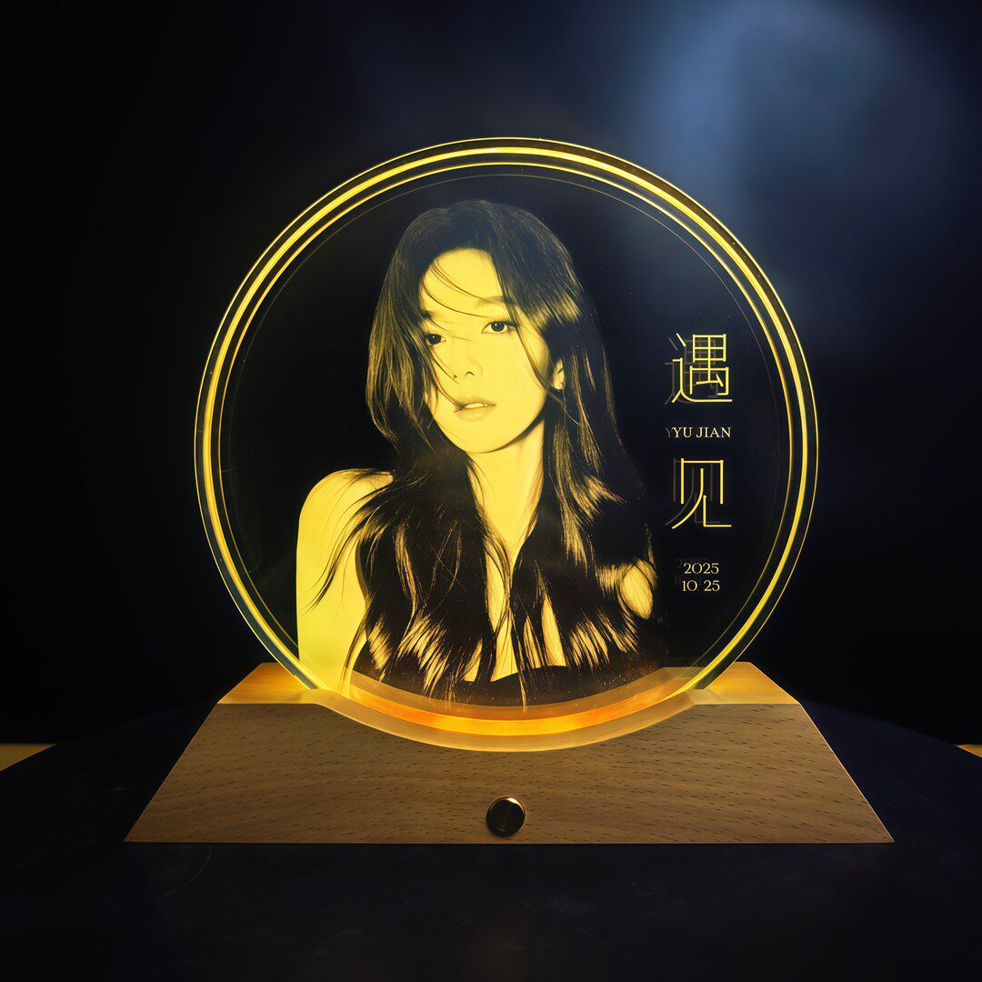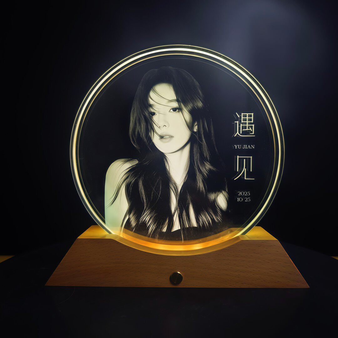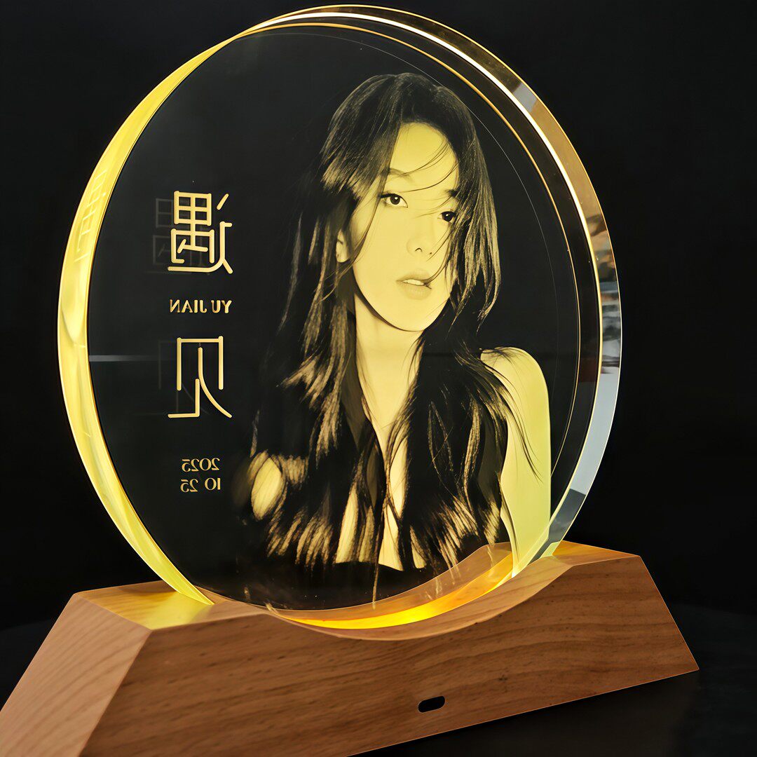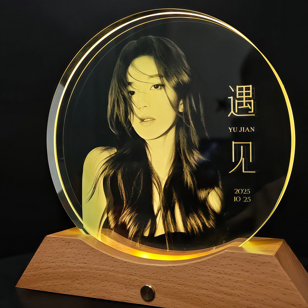 📚 升级款水晶玻璃内雕生日发光摆台跨年夜情人节照片相框摆台定制