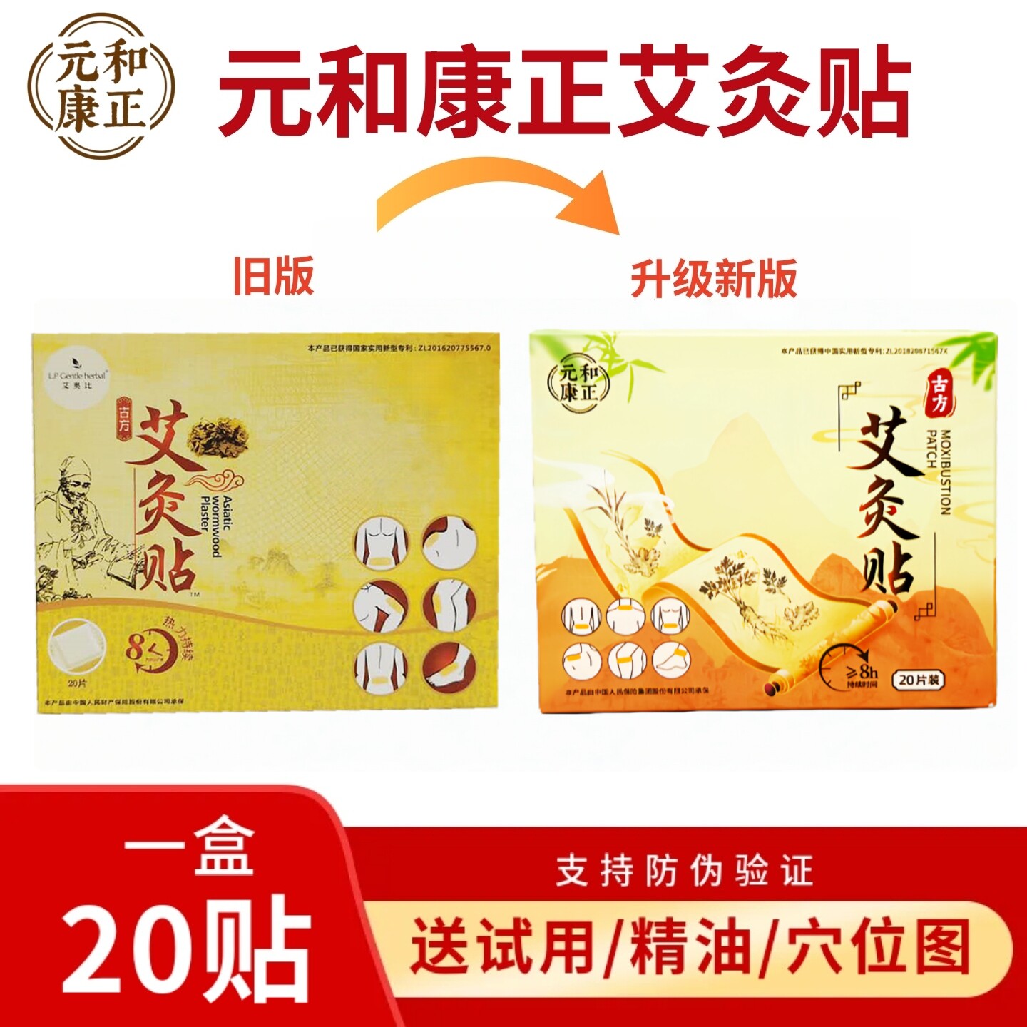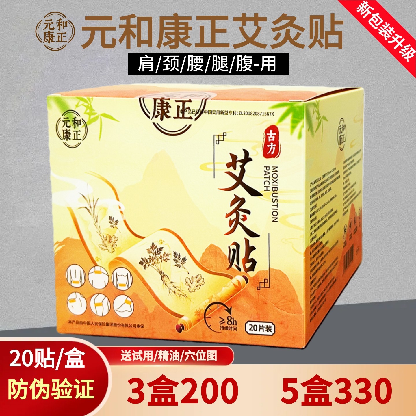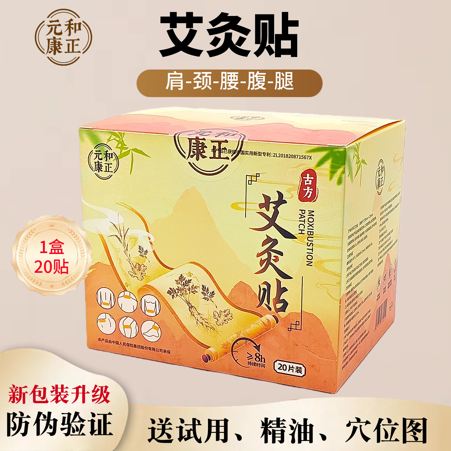 📚 元和康正艾灸贴正品艾奥比暖贴温灸贴颈足肩贴腹全身艾草贴穴位贴