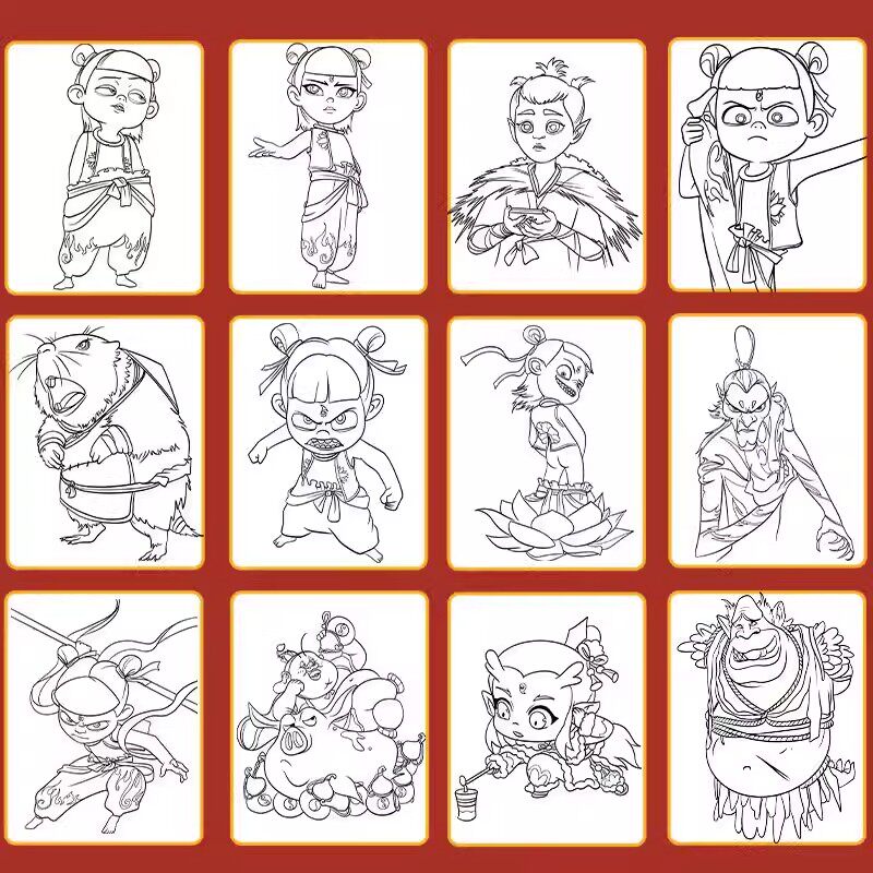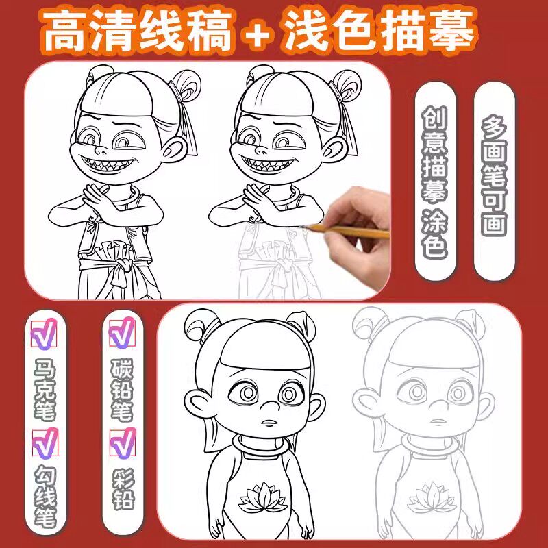 📚 哪吒2魔童闹海临摹本儿童绘画本哪咤电影描摹本图画画本动漫小学生专用涂色描画简笔画册控笔训练手绘图本