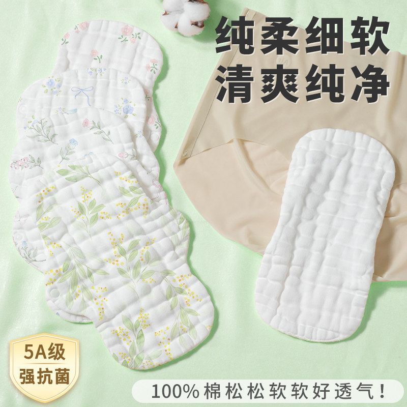 📚 纱布纯棉卫生巾透气可洗少女儿童初潮月经生理期姨妈防侧漏护垫薄