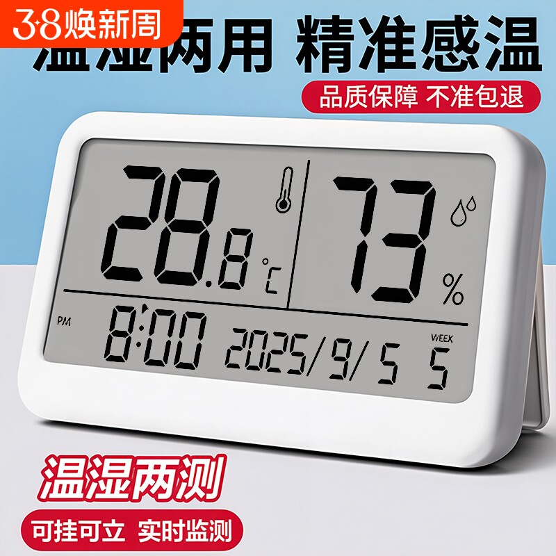 📚 温湿度计室内家用精准高精度电子温度表万年历大屏显示闹钟客厅