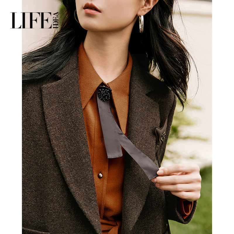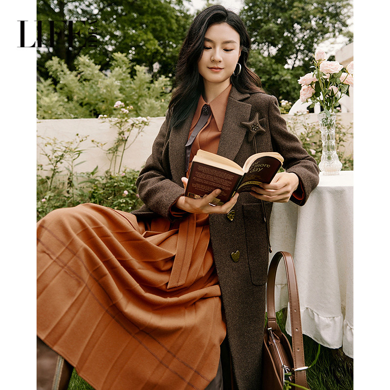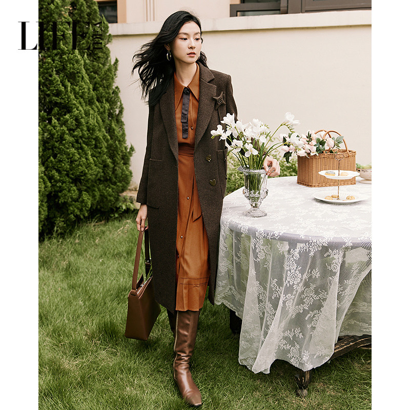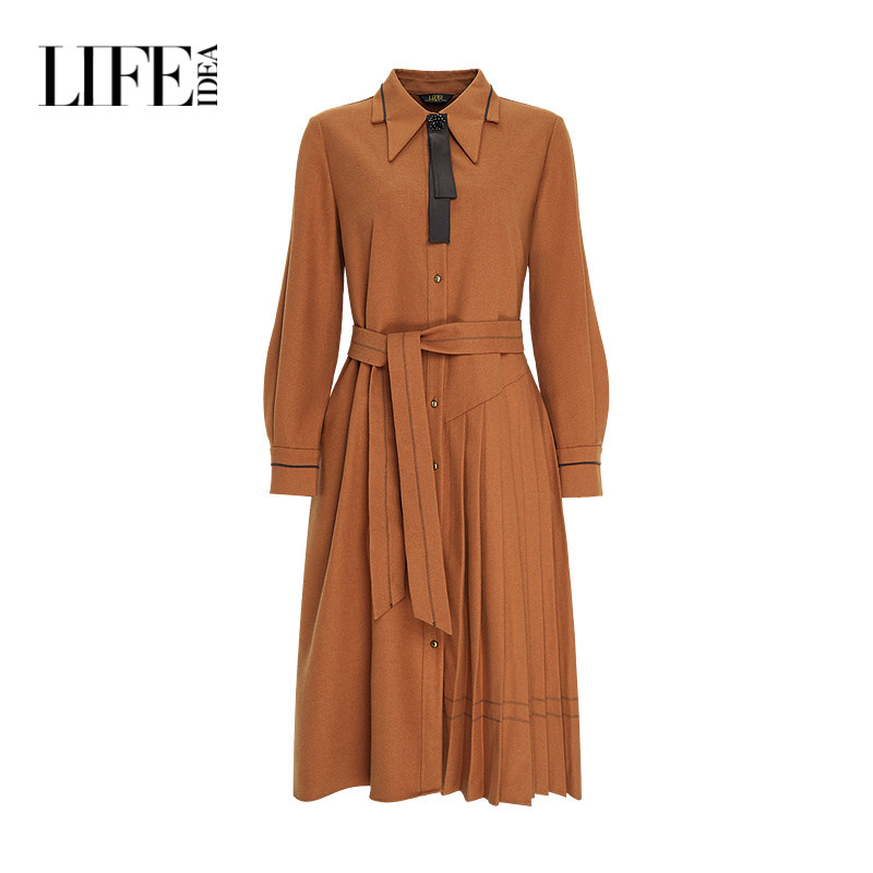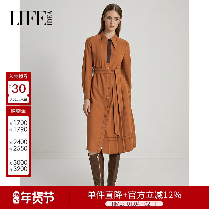 📚 莱芙艾迪儿设计感优雅秋冬多巴胺色系褶皱收腰显瘦中长袖连衣裙女
