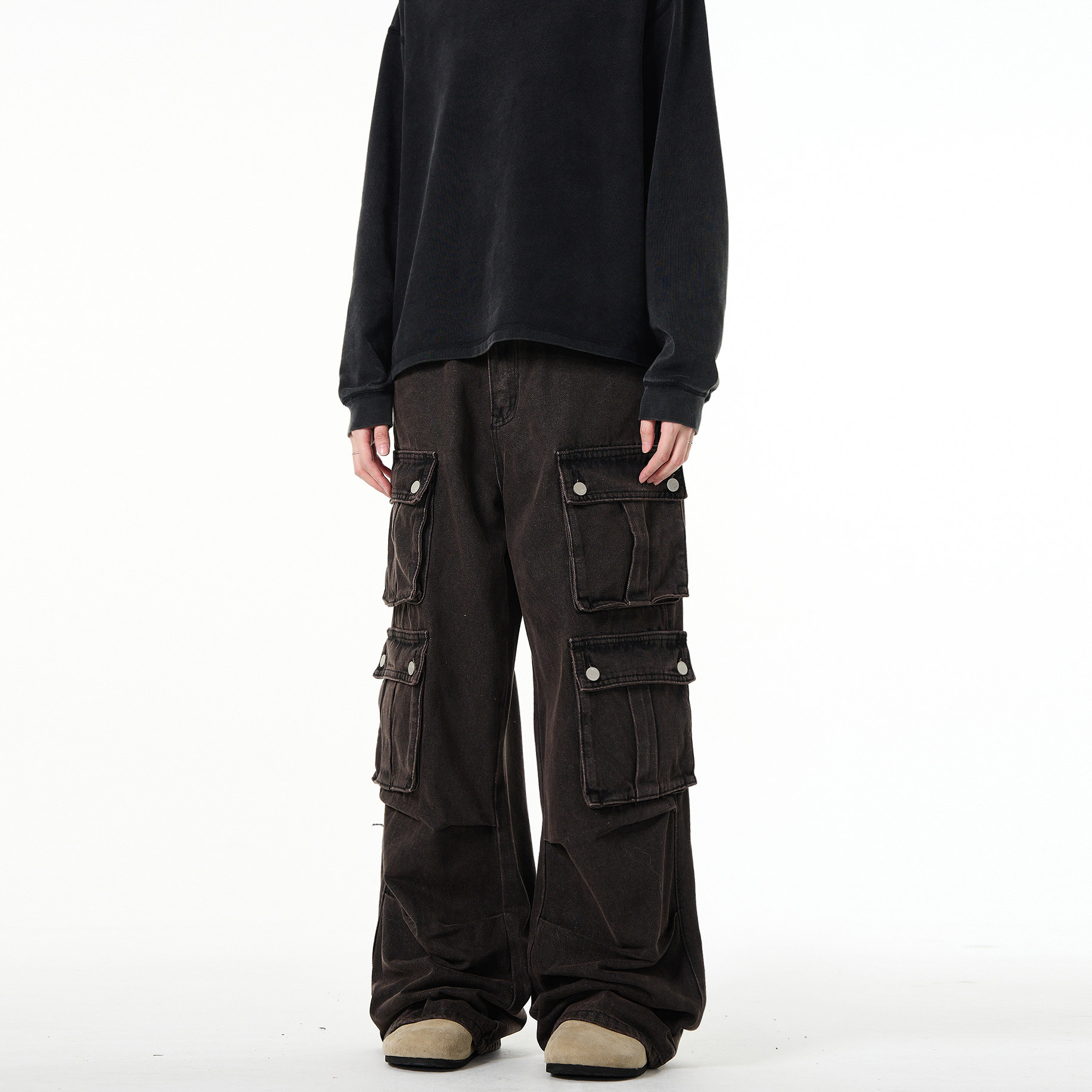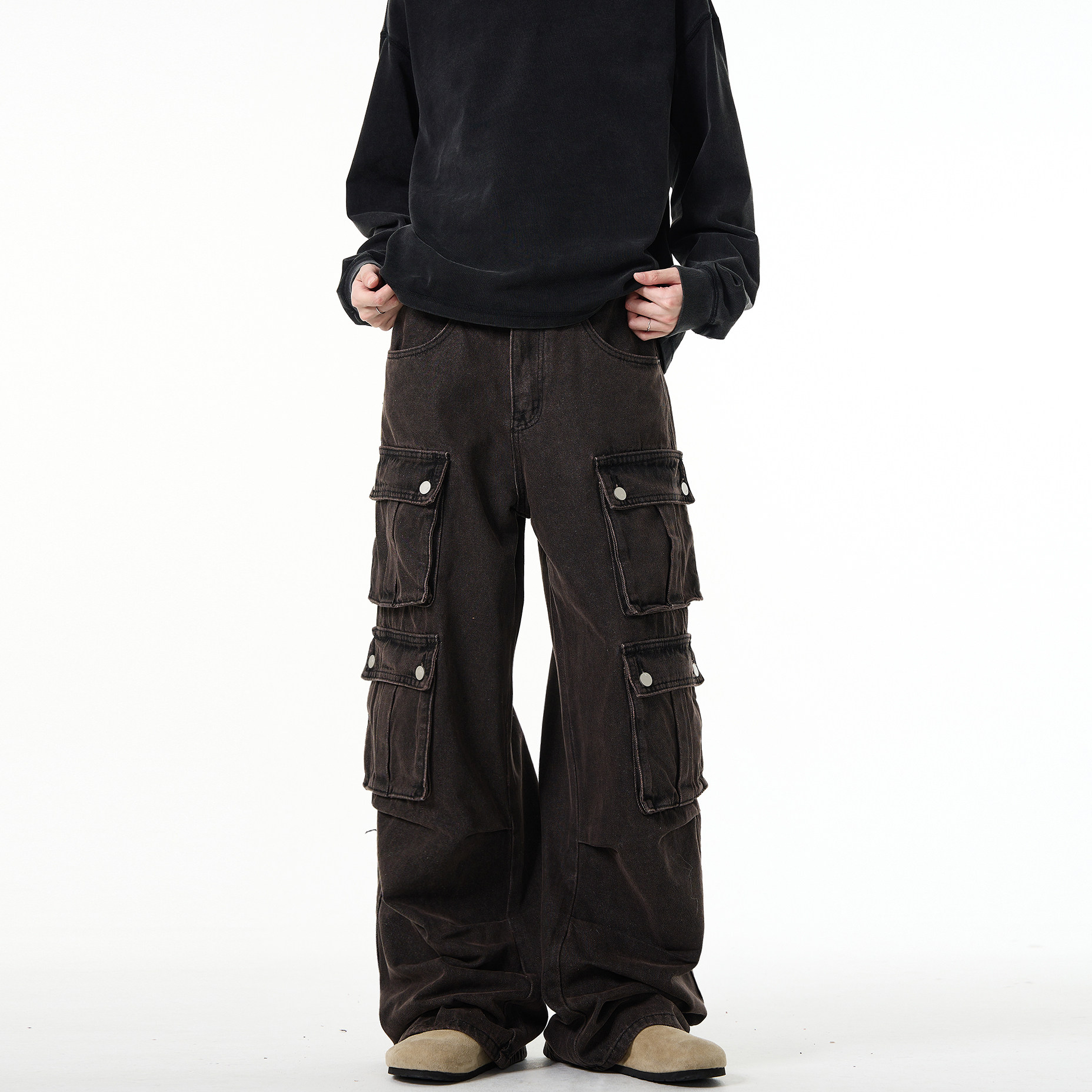 📚 MADWITCH复古高级感重磅水洗多口袋工装牛仔裤vintage宽松裤子男