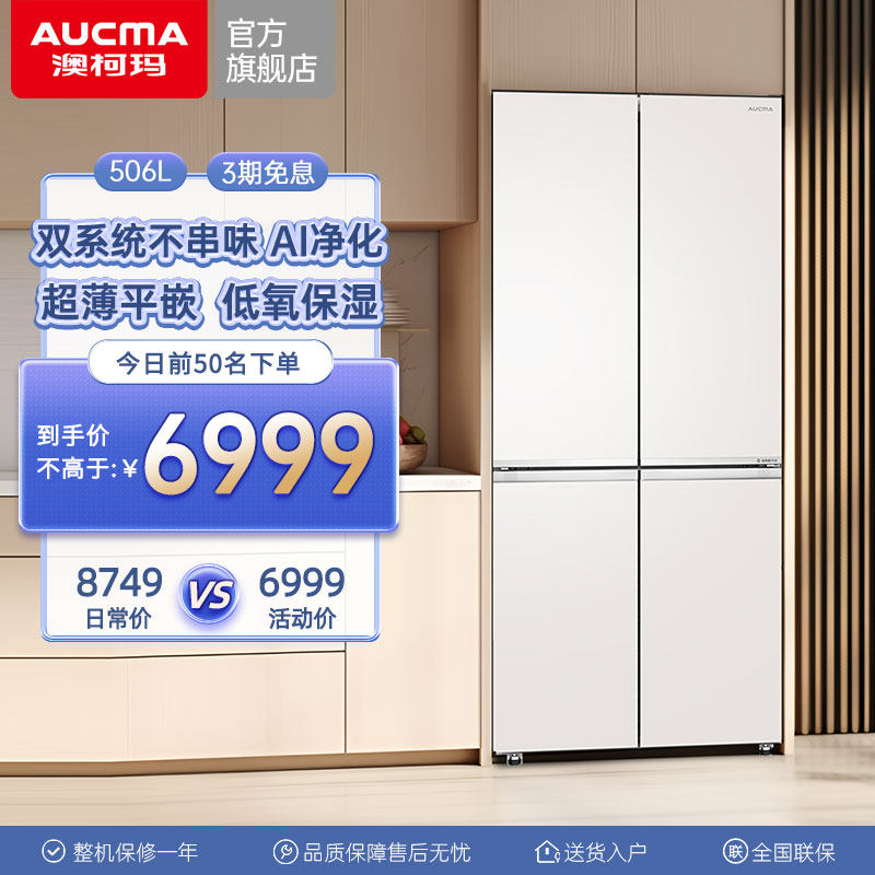 📚 澳柯玛白海豚BCD-5O6WPGZMTD双系统超薄平嵌十字四门冰箱