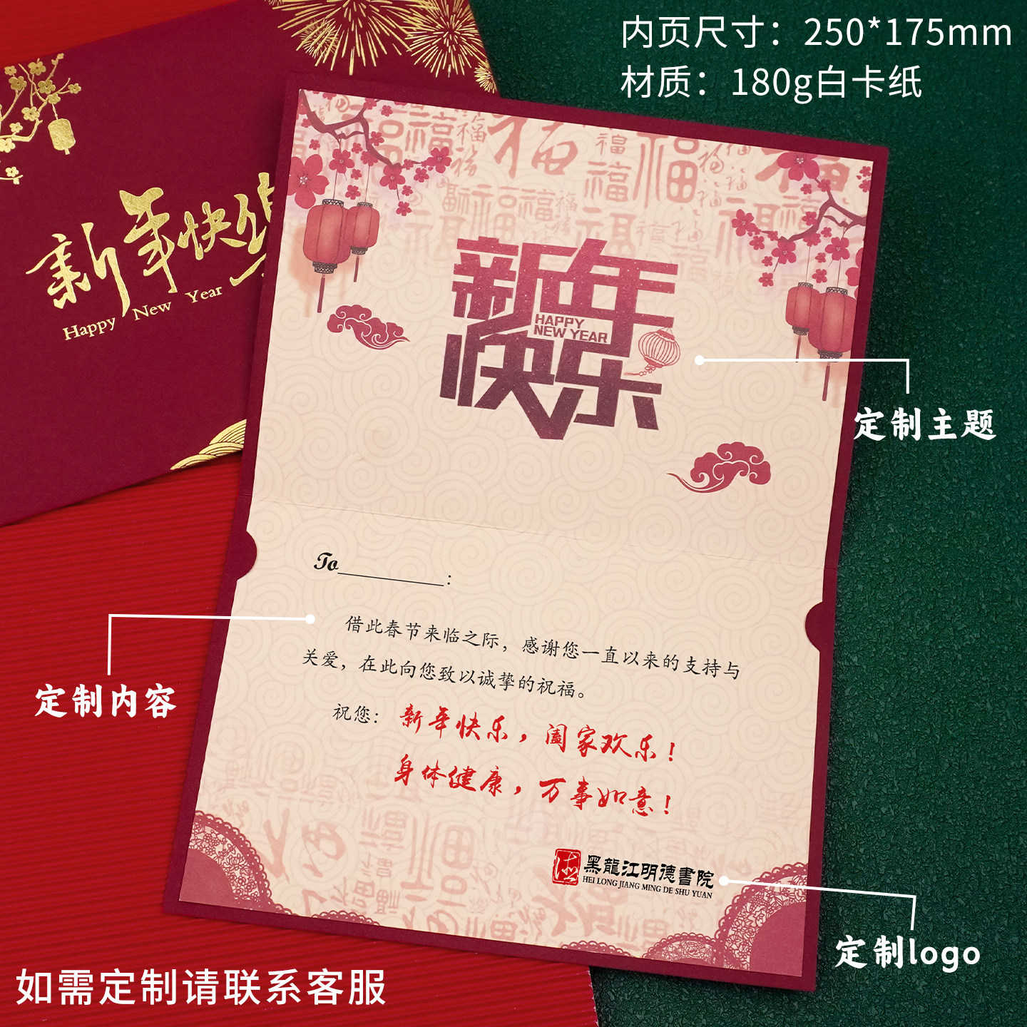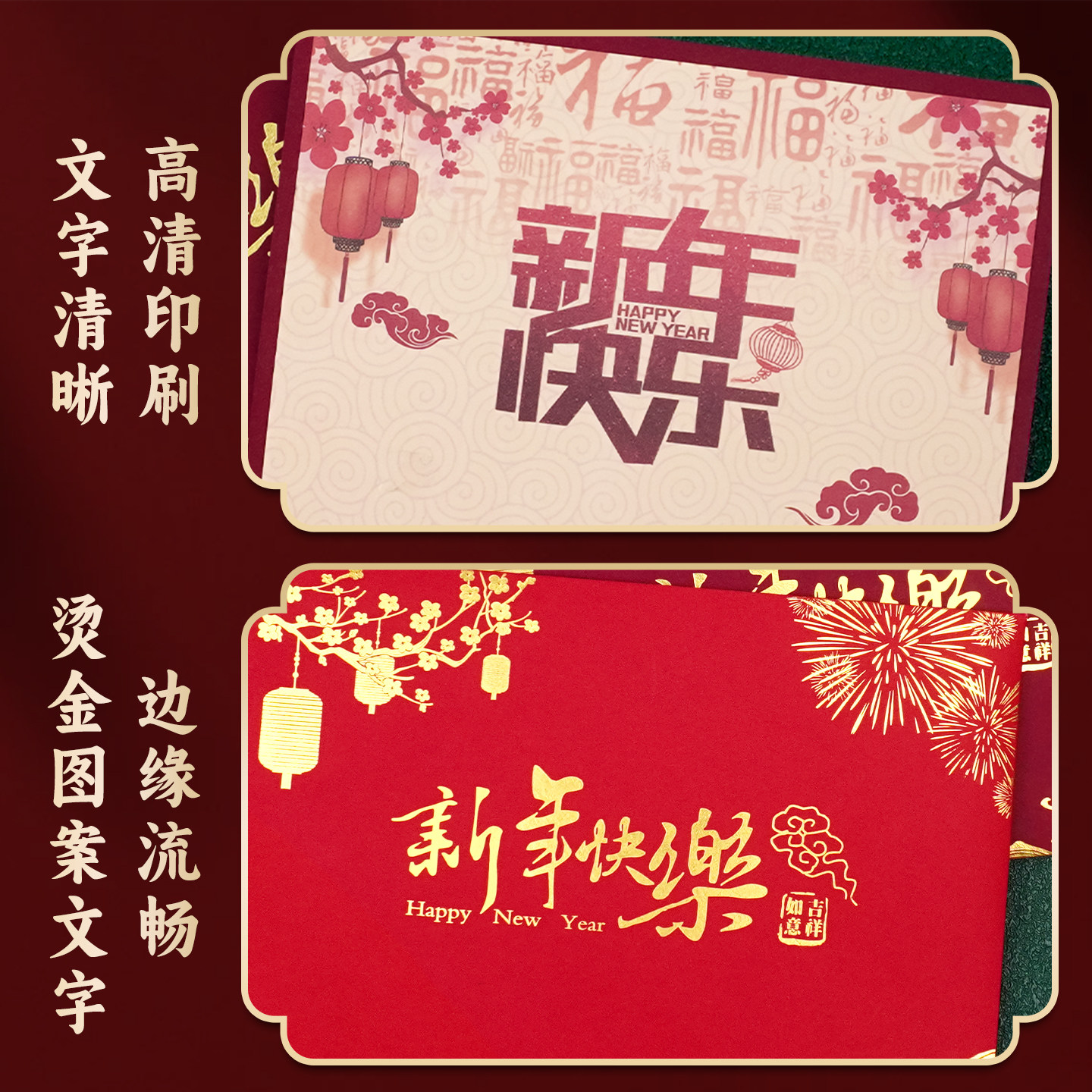 📚 新年贺卡定制国风红色烫金工艺春节感恩祝福卡片送客户员工年会礼