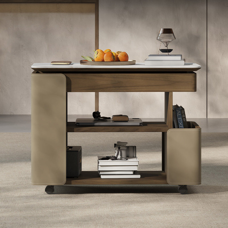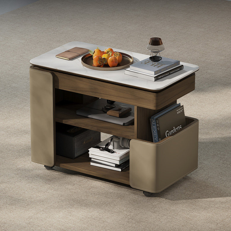 📚 客厅家用岩板可移动升降茶几巴士边几小推车意式旋转边桌沙发边柜