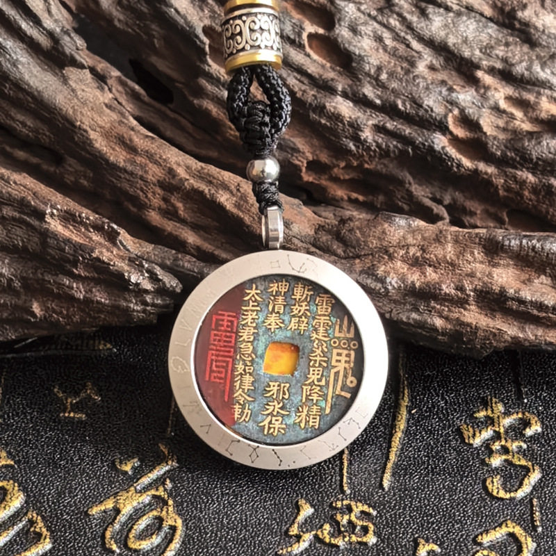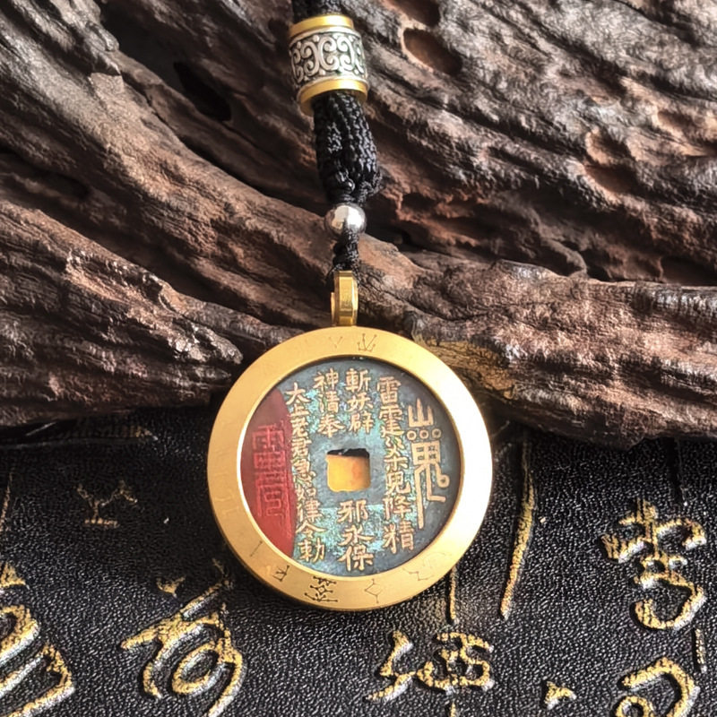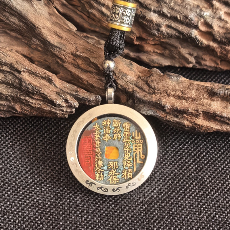 📚 【龙虎山发货】老铜山鬼花钱吊坠老钱开元通宝保护壳朱砂项链挂件