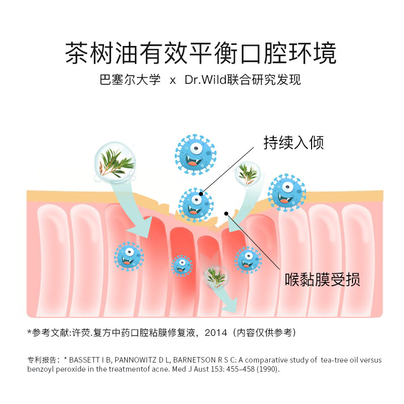 📚 Wild怀尔德茶树精油漱口水清新口气滋养牙龈浓缩型便携无酒精瑞士